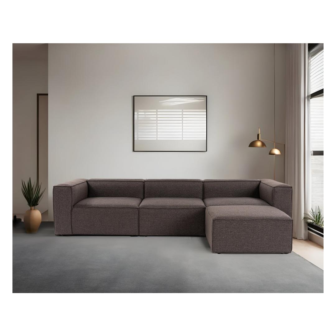 With its sleek and modern design, our Corner Sofa is sure to be the focal point of any room. The dark brown color adds a touch of sophistication and elegance, effortlessly blending with any interior decor. The 100% linen fabric exudes luxury and durability, ensuring that this sofa will remain a timeless piece in your home for years to come.