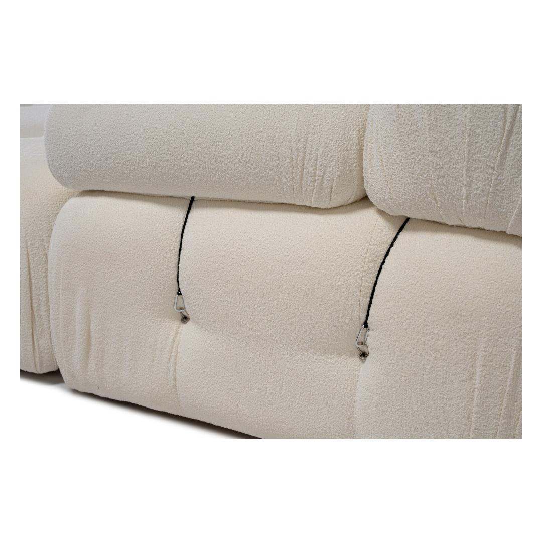 The sofa system can be easily customized with other modular units to suit your space and style preferences. The dry-cleanable fabric ensures easy maintenance and long-lasting beauty. The matt black plastic legs add a modern touch to the classic cream color, making it a versatile piece that complements any decor.
