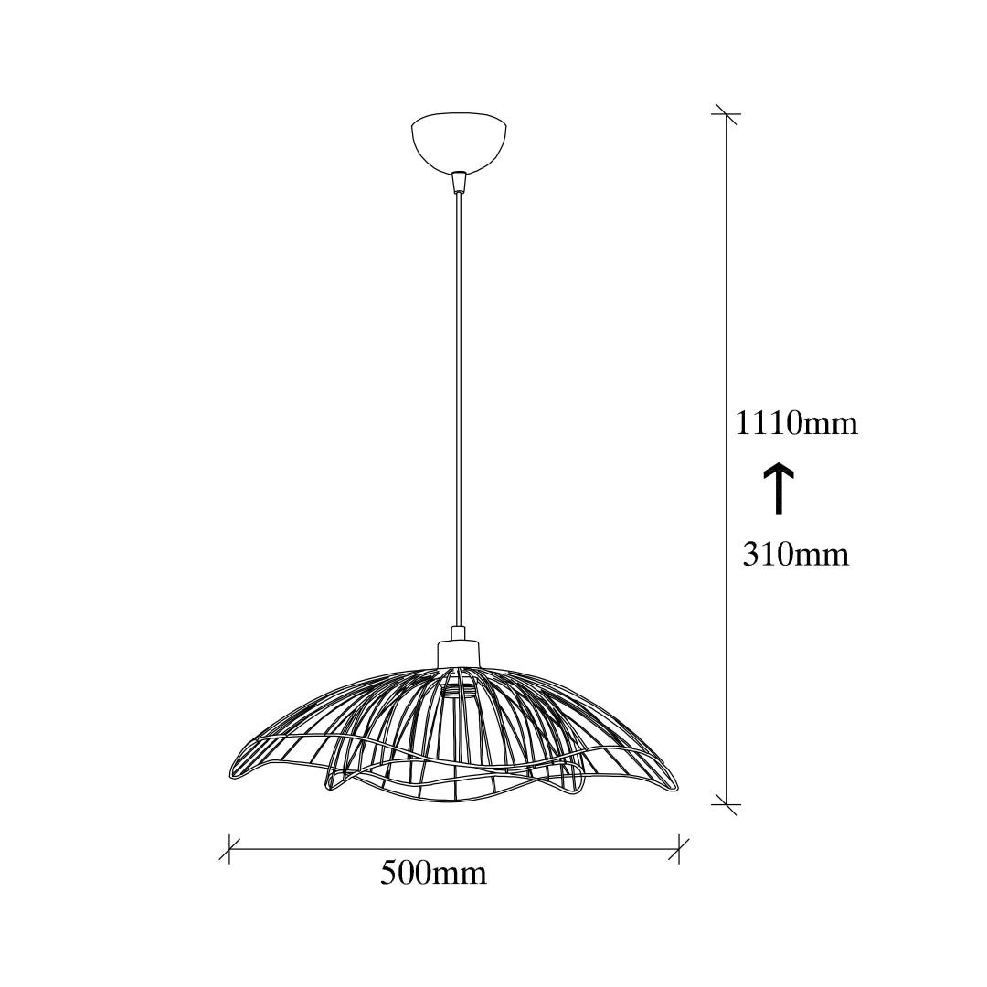 Measuring at 50 x 50 cm, this chandelier is the perfect size to make a statement without overwhelming the room. The cap's diameter of 50 cm and height of 15 cm add a sense of balance and proportion to the overall design. The chandelier's height can be adjusted from 31 cm to 111 cm, allowing you to create the perfect lighting arrangement for any occasion.