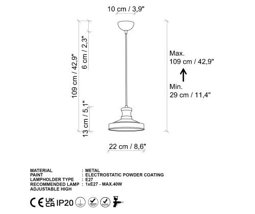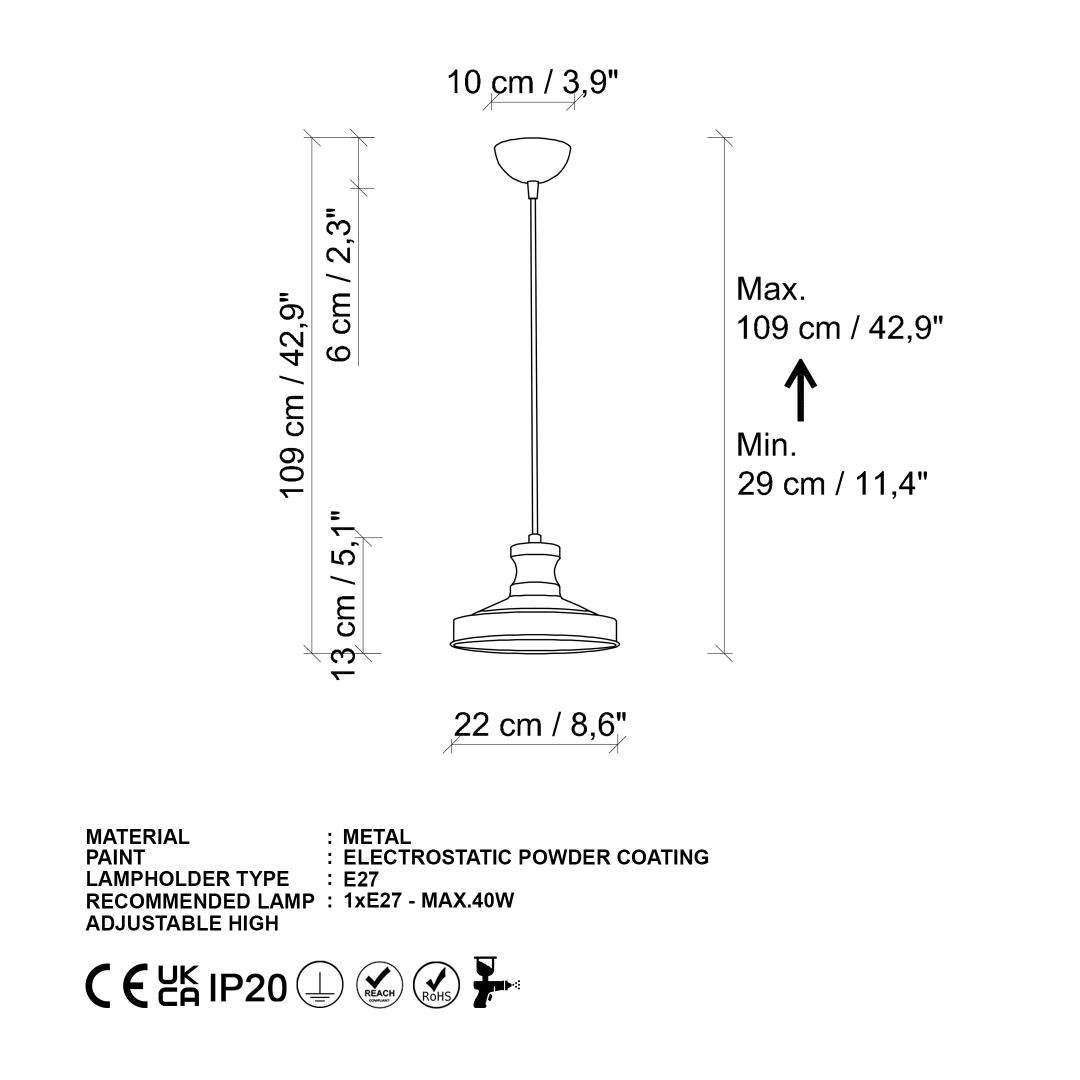 - Socket Type: 1 x E 27 Max 40 W