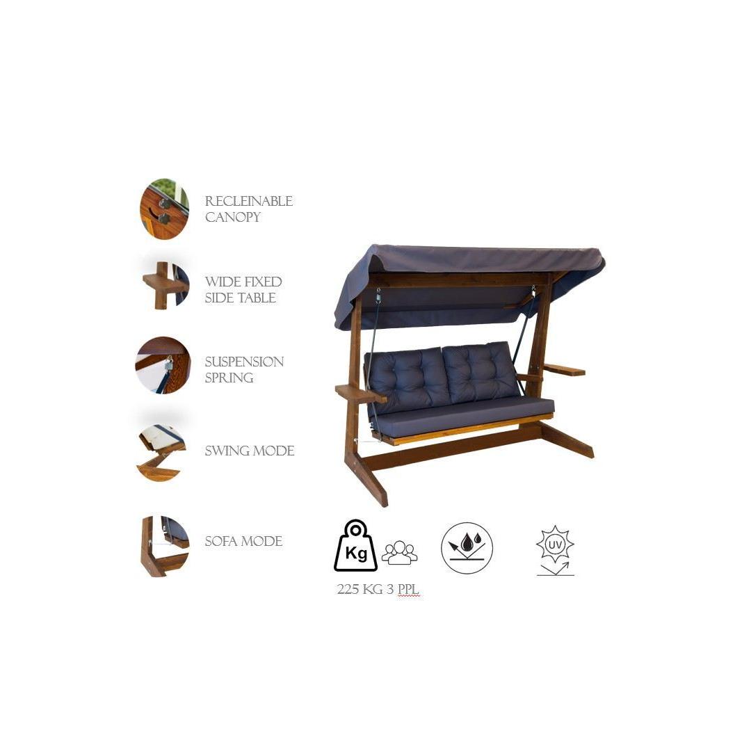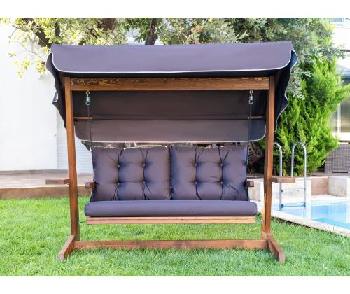 Muuda oma välistingimustes olev ruum hubaseks oaasiks meie aia kolmekohalise kiiktooliga. Kujutle, et veedad laiskade pärastlõunate jooksul õrnalt tuules kiikudes, ümbritsetuna looduse ilust. See kiiktool ei ole lihtsalt mööbliese, vaid kogemus, mis toob sinu ellu rõõmu ja lõõgastust.Kvaliteetne käsitööValmistatud 100% kuusepuust, millel on FSC® sertifikaat, on see kiiktool mitte ainult vastupidav, vaid ka keskkonnasõbralik. 100% polüestrist kangas on lihtne puhastada, veekindel, UV-valguse suhtes vastupidav ja ei pleegi, tagades, et see näeb aastate jooksul ilus välja. 18 DNS vaht tagab mugava istumiskogemuse, ideaalne tundide kaupa lõõgastumiseks.Stiilne ja funktsionaalne220 cm laiuse, 100 cm sügavuse ja 175 cm kõrgusega on see kiiktool piisavalt avar, et mugavalt mahutada kolme inimest. Antratsiitvärv lisab igale välistingimustes asuvale keskkonnale elegantsi, muutes selle stiilseks lisandiks sinu aeda või terrassile.Tehnilised andmed:Raam: 100% kuusepuu, millel on FSC® sertifikaatKangas: 100% polüester, 210 grLihtne puhastadaVeekindelUV-valguse suhtes vastupidavEi pleegi18 DNS vaht istumiseksMõõtmed: Laius 220 cm, Sügavus 100 cm, Kõrgus 175 cmVärv: Antratsiit Värv: Anthracite