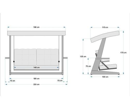 Width: 220 cm Depth: 100 cm Height: 175 cm