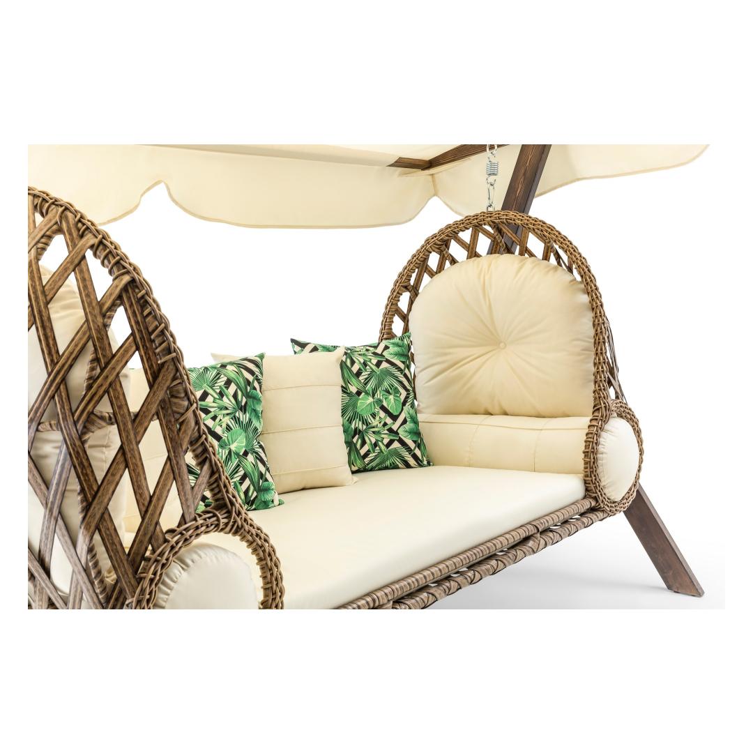 Muutke oma väliruum meie aia kolmekordse kiiku tooliga hubaseks oaasiks. See kaunilt meisterdatud kiikutool on ideaalne lisa teie aiale, siseõuele või tagaaiale. Kujutage ette, et veeta laisad pärastlõunad õrnalt tuule käes, ümbritsetud looduse iluga. Lõdvestu stiililt ja mugavalt 100% männipuidust ja polüesterkangast valmistatud see pöördetool pole mitte ainult vastupidav, vaid ka stiilne. Kreemivärv lisab mis tahes väliskeskkonnale elegantsi. Eemaldatav polsterdus muudab imelihtne puhastamise, veekindel kangas aga tagab, et teie kiikutool püsib hea välja aastate jooksul. Looge püsivad mälestused Ükskõik, kas naudite hommikul tassi kohvi või vaatate õhtul päikeseloojangut, pakub see pöördetool ideaalset kohta lõõgastumiseks ja lõõgastumiseks. Veetke kvaliteetset aega oma lähedastega või nautige lihtsalt rahulikku üksi aega selles mugavas ja kutsuvas pöördes toolides.Tehnilised detailid:raam: 100% männipuukangas: 100% polüestritlihtne puhas kangasVeekindelLaius: 263 cm, kõrgus: 180 cm, sügavus: 120 cmIstme suurus: laius: 150 cm, sügavus: 80 cmEemaldatav padjakateVajalik kokkupanekVärv: kreem Värv: Cream