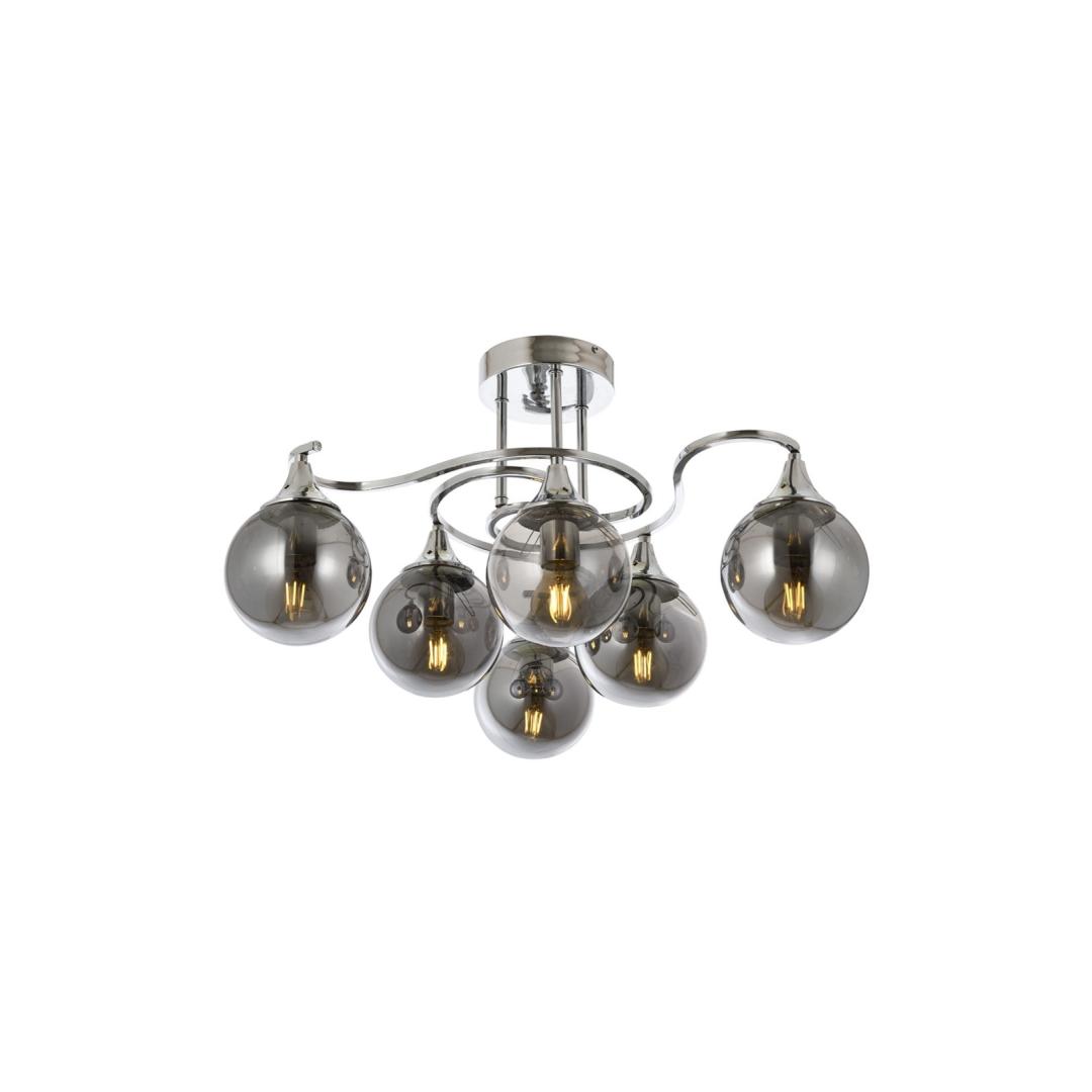 Introducing our stunning Chandelier, a masterpiece that will elevate the ambiance of any room. Crafted with a metal body and adorned with a mesmerizing glass cap, this chandelier exudes sophistication and grace. Its sleek design and chrome color make it a perfect fit for any modern or industrial setting.