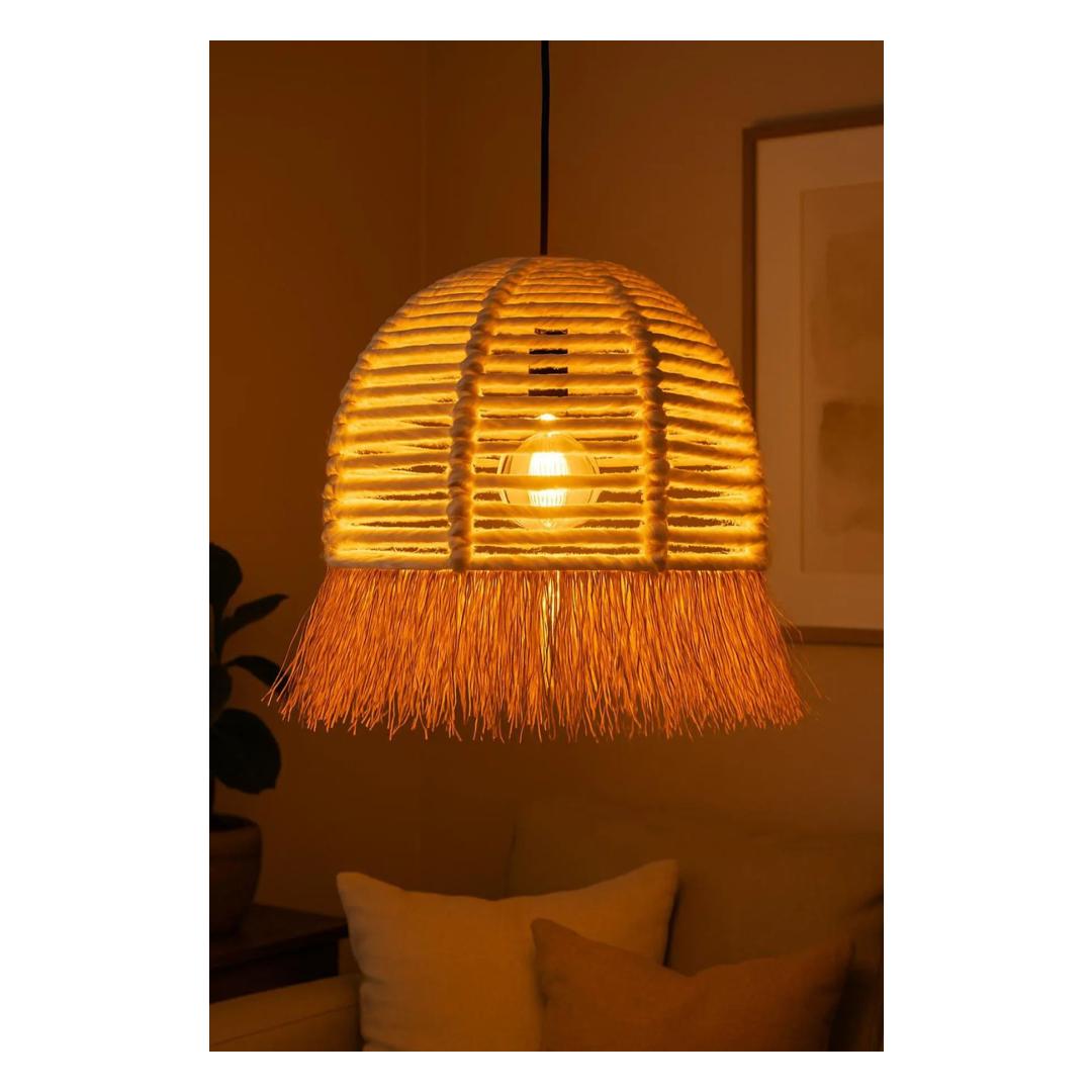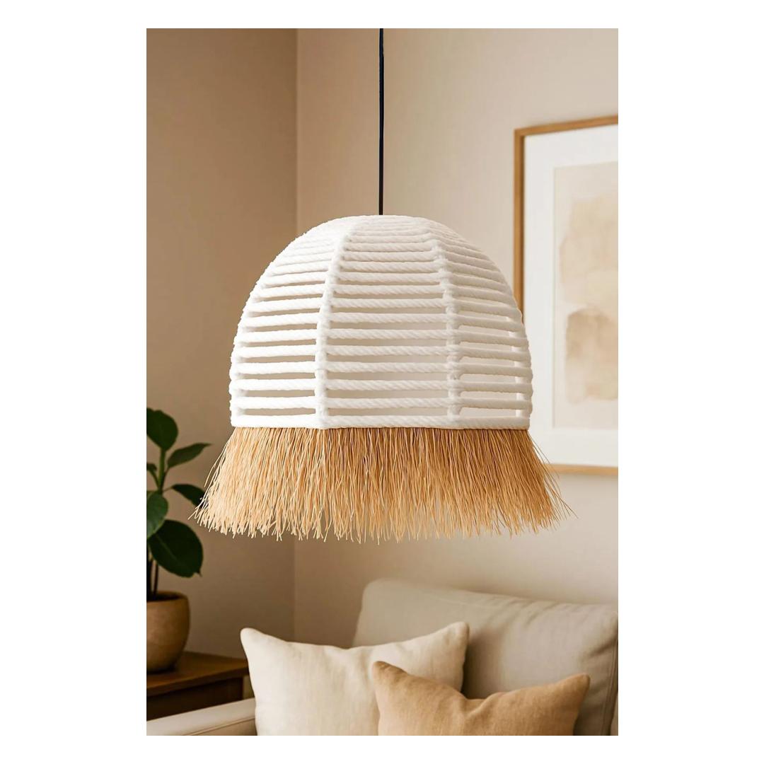 Transform your living space into a luxurious and elegant oasis with our stunning chandelier. The intricate metal body and delicate rafia cap add a touch of sophistication to any room. The adjustable height allows you to customize the look to fit your space perfectly.
