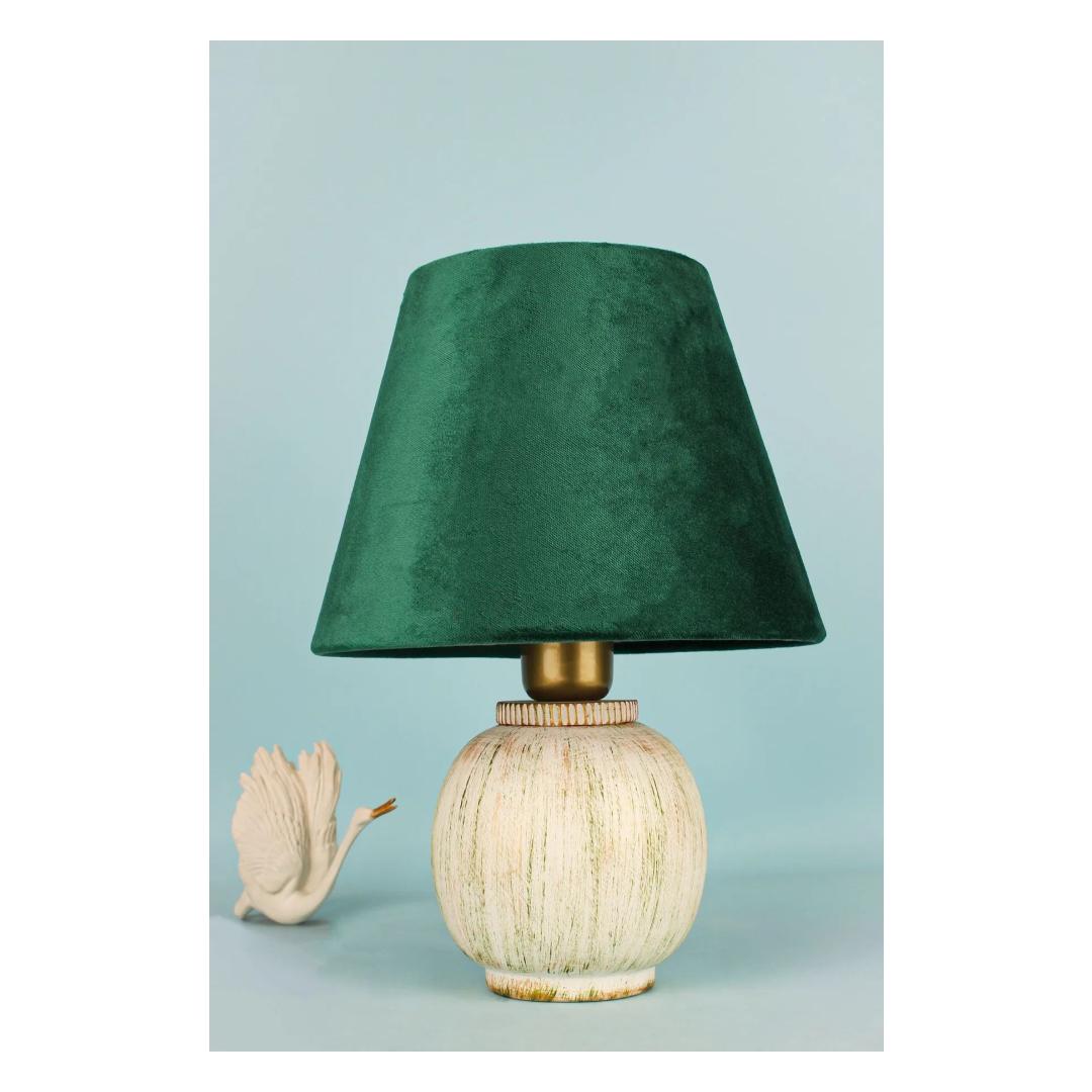 Illuminate your space with the elegant and sophisticated Ceramic Table Lamp. This stunning piece features a ceramic body in a beautiful shade of green, adding a pop of color to any room. The velvet cap adds a touch of luxury, making this lamp a true statement piece in your home.