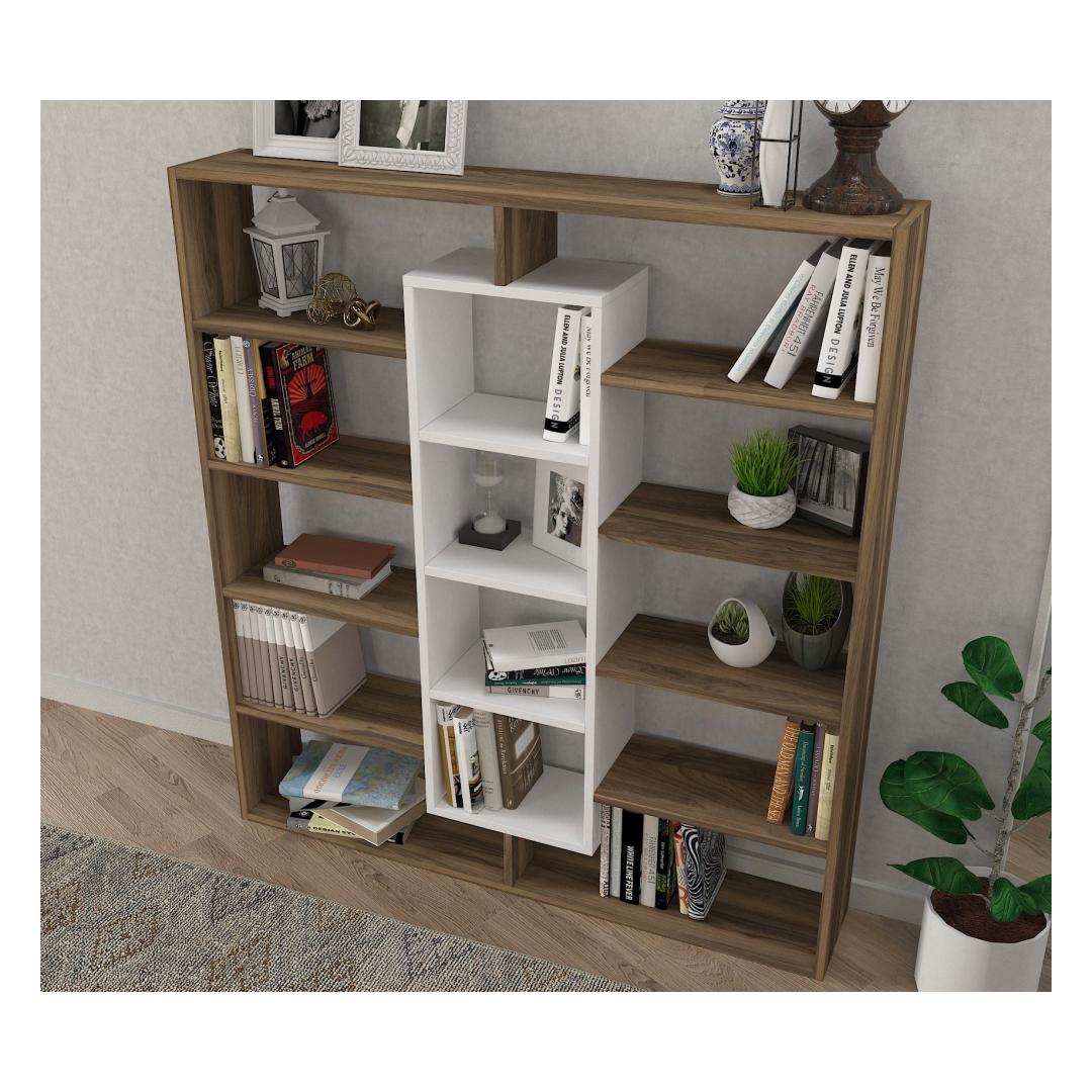 The combination of walnut and white colors gives this bookshelf a modern and stylish look. It effortlessly blends with any interior design, adding a touch of sophistication to your space.