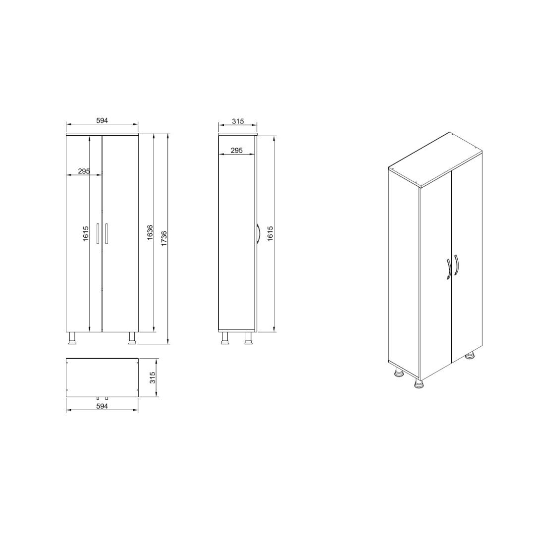 - Size: Width: 59.4 cm, Height: 173.6 cm, Depth: 31.5 cm
