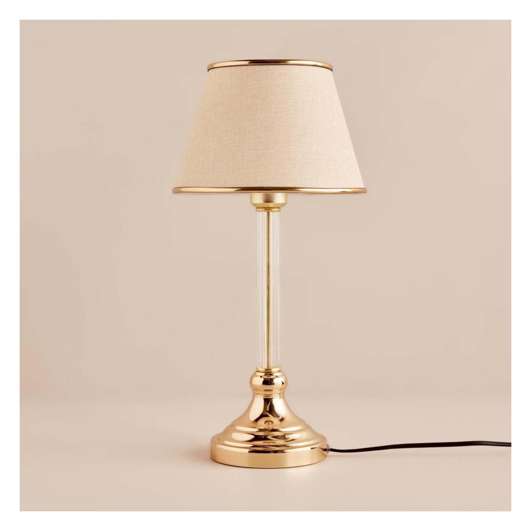 The beige and gold color combination adds a touch of luxury to any space, while the sleek frame and cap's dimensions of 22 cm diameter and 14 cm height create a modern and stylish look. The total height of 45 cm makes it the perfect size for a bedside table or desk.