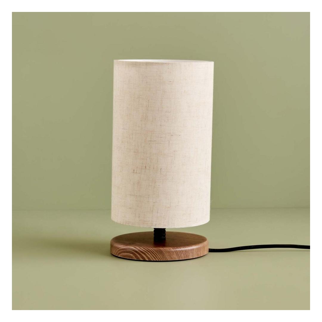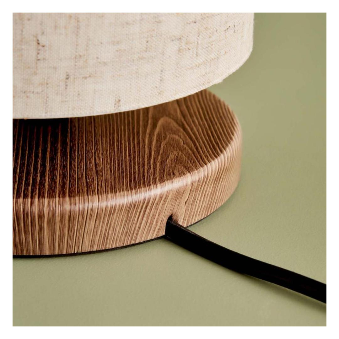 Illuminate your space with the warm and inviting glow of our 100% fabric table lamp. The wooden base adds a touch of natural elegance, while the cream color of the lampshade brings a sense of tranquility to any room.