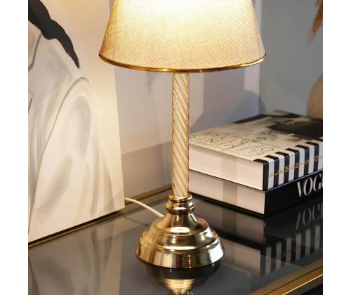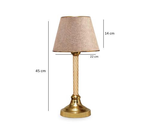 Illuminate your space with elegance and style with our stunning Table Lamp. The combination of the 100% plastic fabric cap and metal base creates a luxurious look that will elevate any room in your home. The beige and gold colors add a touch of glamour, making this lamp a statement piece in any decor.
