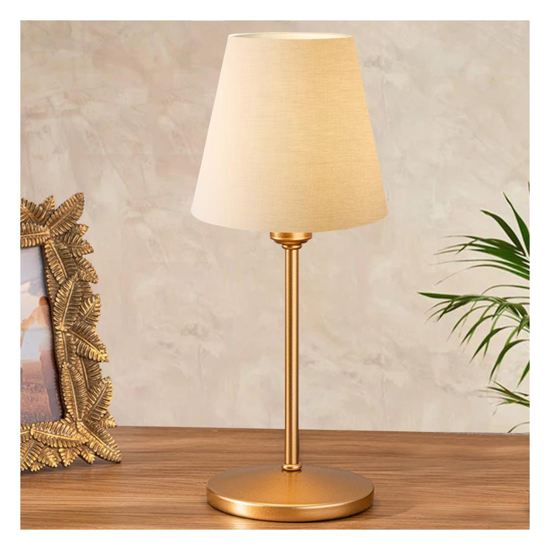 The lamp shade features a fabric cap that adds a luxurious and soft touch to its design. The cream color of the fabric complements the metal body perfectly, creating a harmonious blend of textures and colors that will instantly elevate the style of your space.