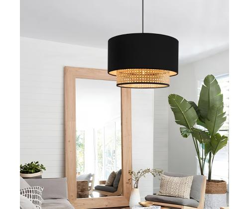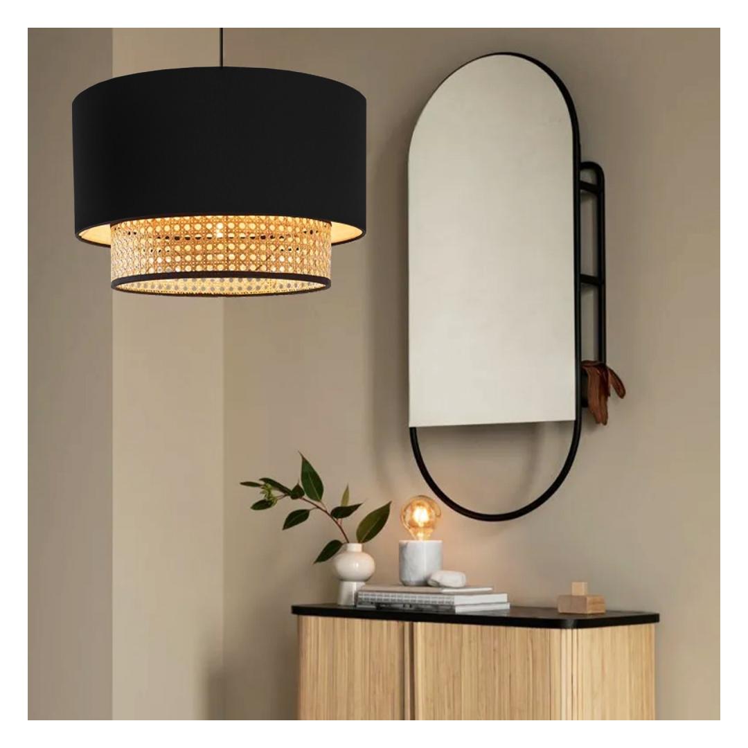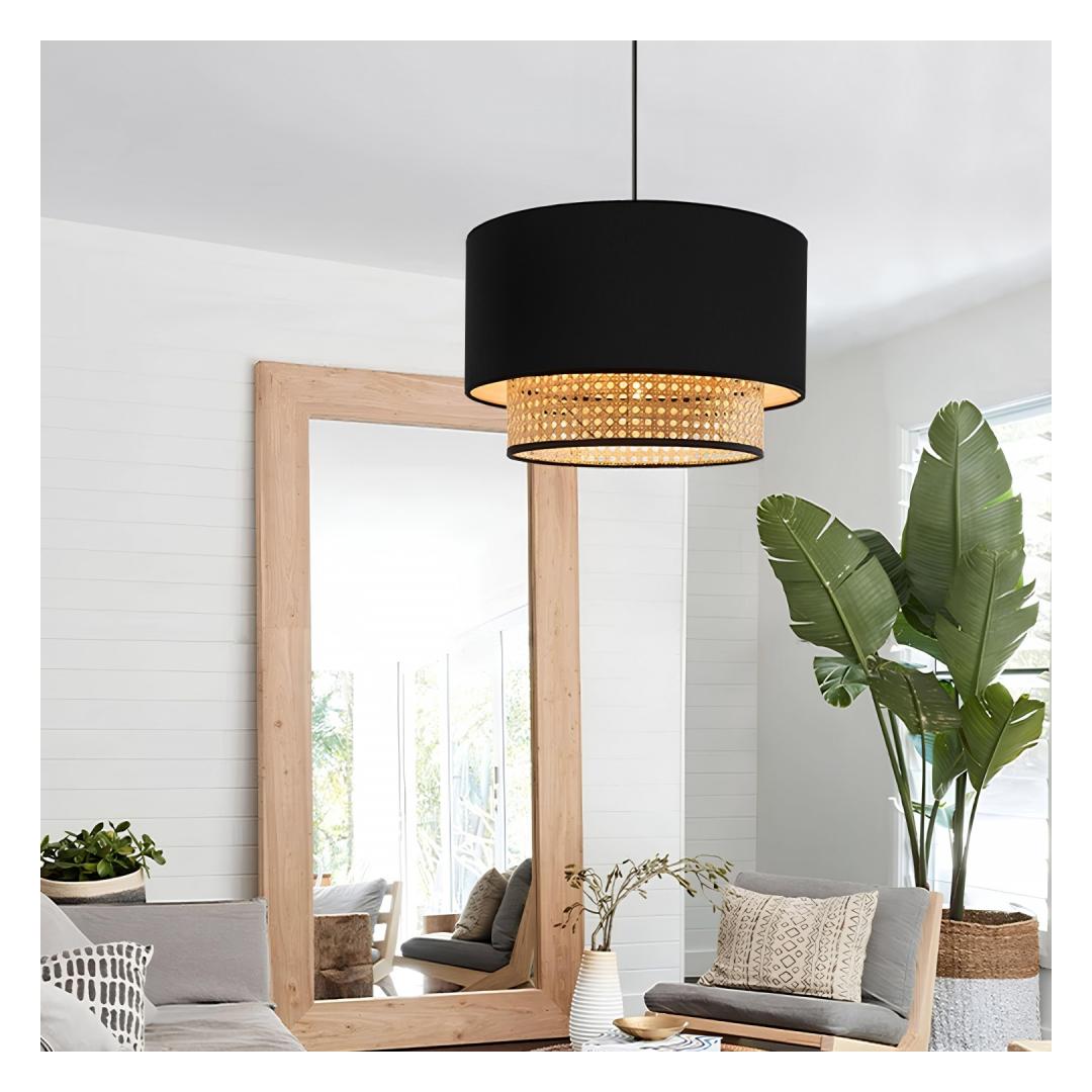 Introducing our stunning chandelier, a masterpiece that will captivate your heart and elevate the ambiance of any room. Crafted with a perfect blend of 50% fabric and 50% rattan, this exquisite piece exudes sophistication and charm.