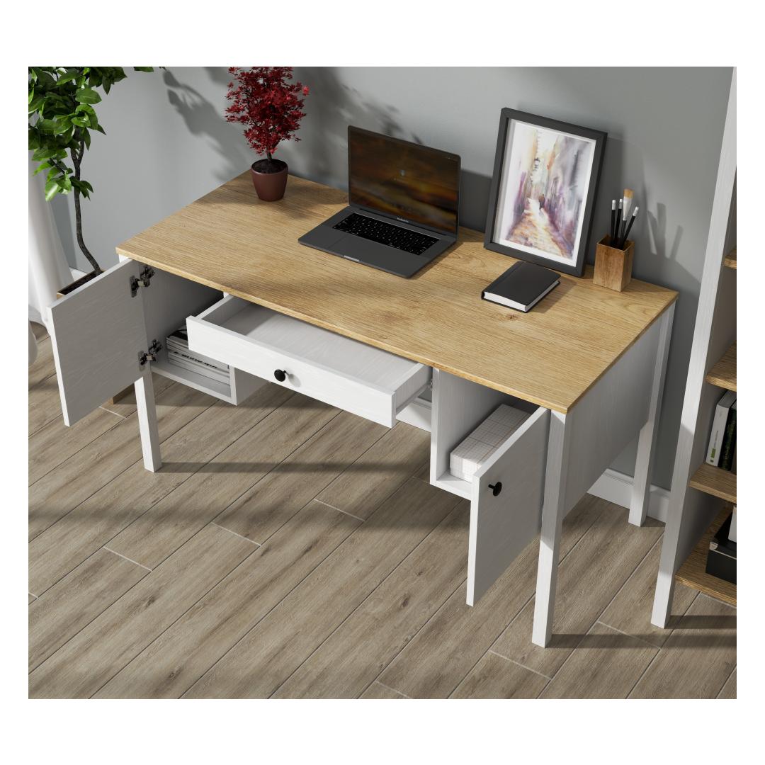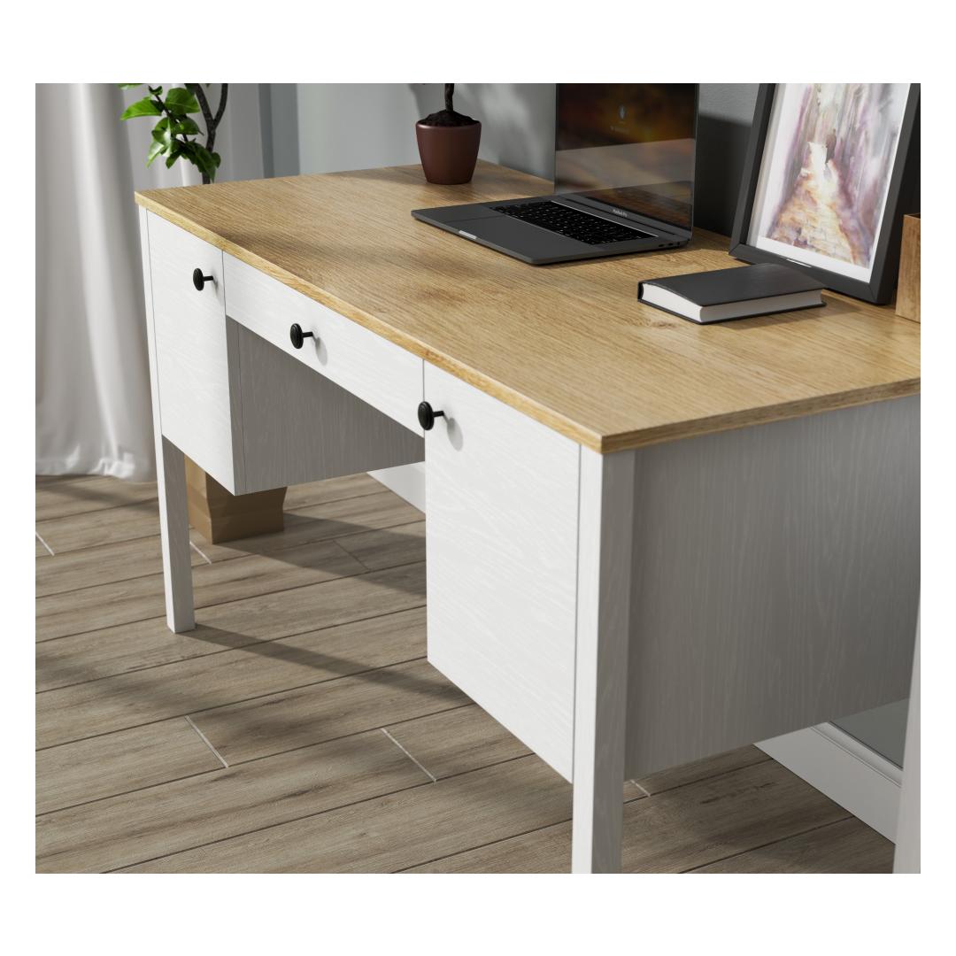 Muuda oma õpingute ruum produktiivsuse ja stiili pühamuks meie kauni õpingulaudaga. Valmistatud 100% melamiinkattega puitlaastplaadist, on see laud mitte ainult vastupidav, vaid kiirgab ka elegantsi ja rafineeritust.Tõsta oma tööruum kõrgemale tasemeleLihtsa disaini ja puidu ning valge värvi ideaalse kombinatsiooniga tõstab see laud koheselt sinu toa esteetikat. MDF-profiiliga jalad ja metallist käepidemed lisavad modernsuse puudutust, samas kui arvukad riiulid pakuvad piisavalt ruumi kõigi sinu õpingute tarvikute jaoks.Lihtne organiseerimineÜtle hüvasti segadusele ja tere organiseeritusele selle lauaga, mille saab kinnitada seina külge lisastabiilsuse tagamiseks. 18 mm paksus ja 0,8 mm servakaitse tagavad tugevuse ja pikaealisuse, muutes selle usaldusväärseks kaaslaseks kõigil sinu õpingute sessioonidel.Tehnilised andmed:Materjal: 100% melamiinkattega puitlaastplaatPaksus: 18 mmServakaitse: 0,8 mmMõõdud: Laius: 132 cmKõrgus: 73 cmSügavus: 60 cmJalad: MDF-profiiliga jaladKäepidemed: MetallVärv: Puit ja valge Värv: Wooden White
