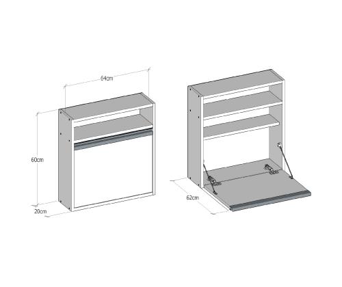 Width: 64 cm Height: 60 cm Depth: 20 cm