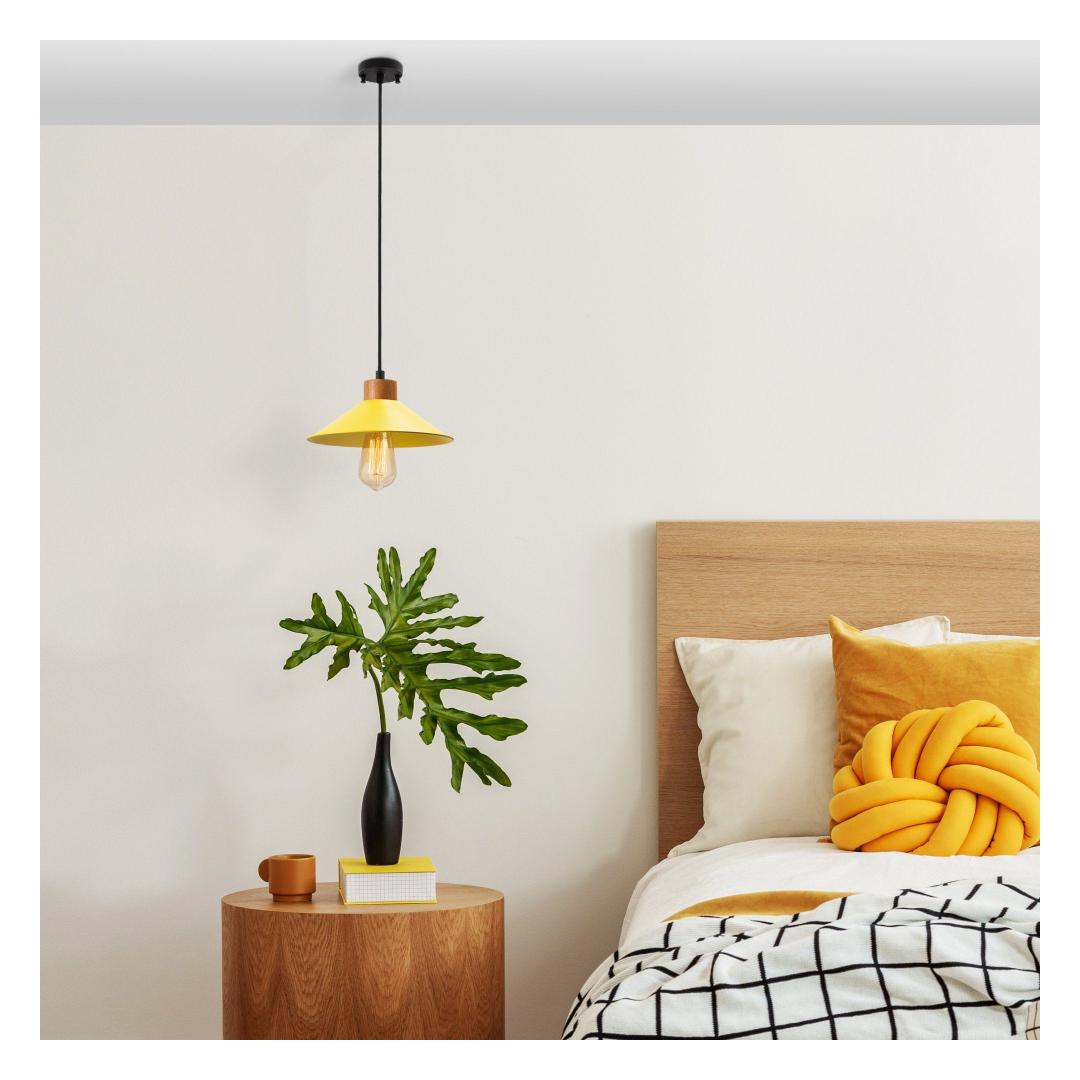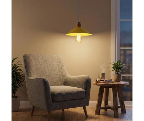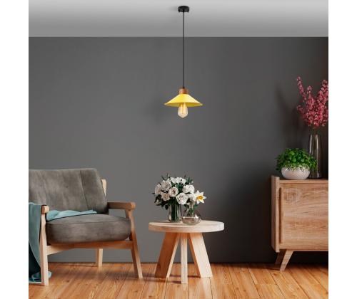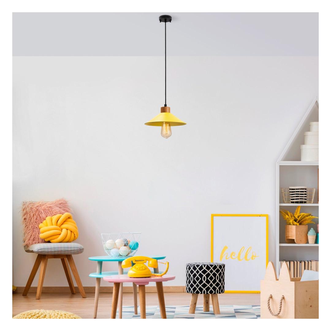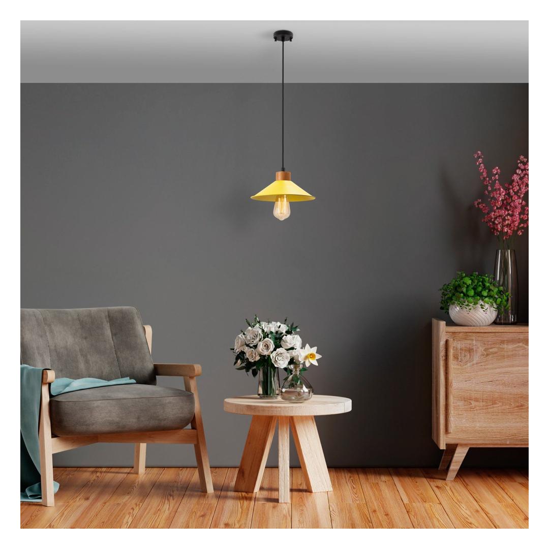 Transform your living space into a captivating oasis with our stunning Yellow Chandelier. This exquisite piece features a metal body with a wooden base, adding a touch of elegance and sophistication to any room. The adjustable height allows you to customize the look to fit your space perfectly, while the vibrant yellow color adds a pop of personality and style.