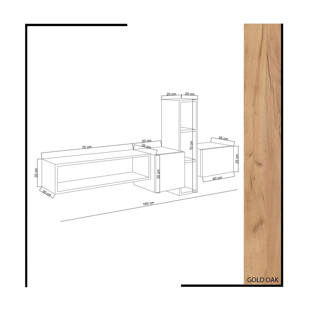 Total TV Unit Size: Width: 160 cm Height: 70 cm Depth: 35 cm