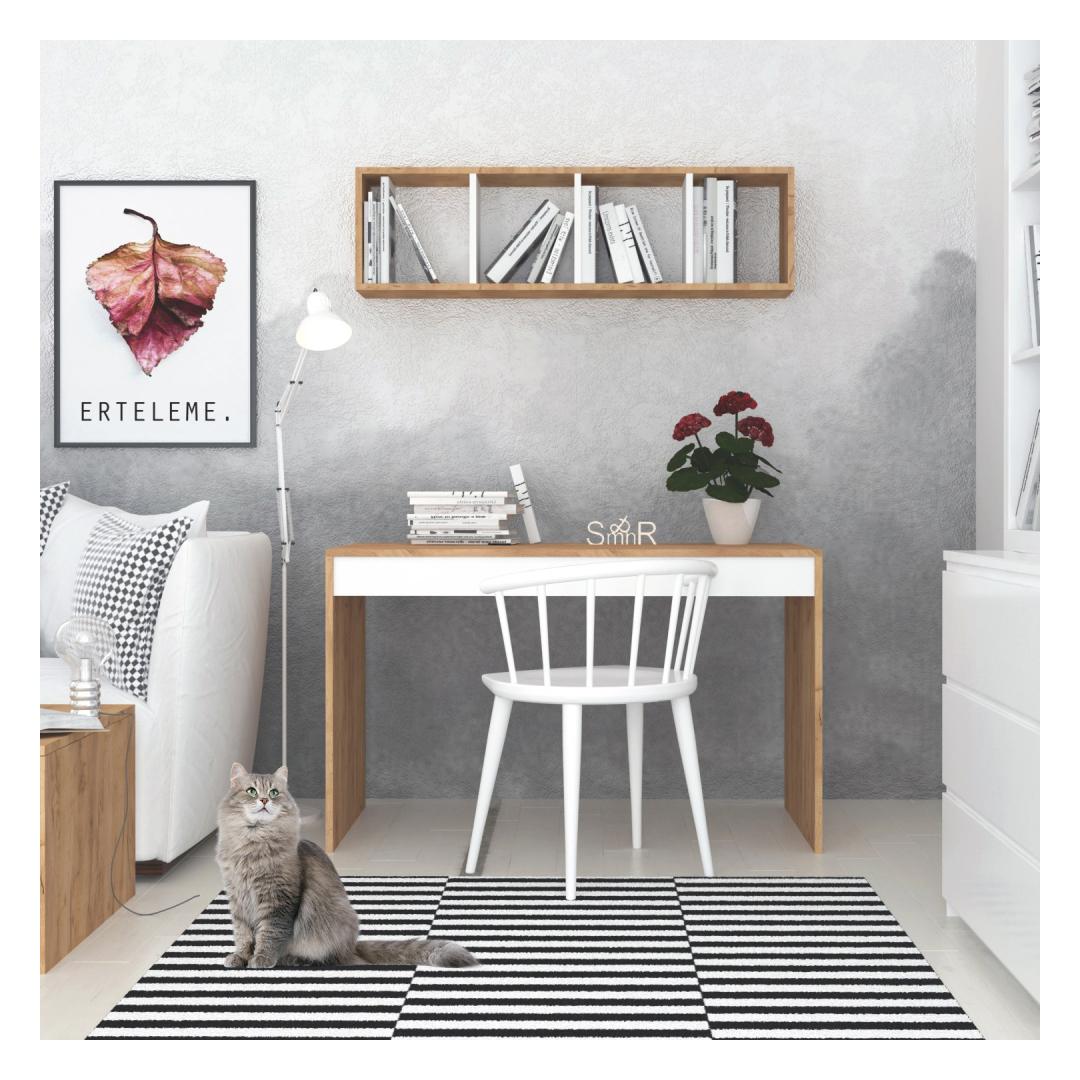 Loo oma ideaalne õpperuum meie moodsa õppelauagaMuuda oma õpperuum stiilseks ja funktsionaalseks ruumiks meie moodsa õppelaua abil. See ülima hoole ja tähelepanelikkusega valmistatud õppelaud on mõeldud teie tootlikkuse suurendamiseks ja mugava õpikeskkonna loomiseks. Tõstke oma tootlikkust läbimõeldud disainiga laua abilMeie töölaud on valmistatud 100% melamiiniga kaetud puitlaastplaadist, mis tagab vastupidavuse ja pikaealisuse. 18 mm paksus lisab stabiilsust ja tugevust, mis võimaldab teil keskenduda oma tööle ilma kõrvaliste häireteta. Tammepuust elegantse värvusega laud lisab teie õpperuumi elegantsi, mistõttu sobib see ideaalselt igasse moodsasse või skandinaavia inspiratsiooniga sisekujundusse. Maksimeerida oma ruumi seinariiuligaLisaks töölauale kuulub selle komplekti juurde ka seinariiul, mida saab kinnitada seinale. See võimaldab teil oma vertikaalset ruumi maksimaalselt ära kasutada, pakkudes täiendavat hoiuruumi raamatute, kirjatarvete või dekoratiivsete esemete jaoks. Seinariiuli laius on 120 cm, 33 cm. 6 cm kõrgusel ja 20 cm sügavusel, pakkudes piisavalt ruumi kõigile olulistele asjadele. Tehnilised üksikasjad:Tootetüüp: Toode on valmistatud puidust riiulidest: KirjutuslaudMaterjal: Materjal: Materjal: Materjal: Materjal: Materjal: Materjal: Materjal: materjal: 100% melamiiniga kaetud puitlaastplaatPaksus: 18mmÕppetöölaua suurus: Laius: 120cm, kõrgus: 74cm, sügavus: 60cm.Seina riiuli suurus: sügavus: 20cm, laius: 120cm, kõrgus: 33. 6cm, sügavus: 20cmVärv: TammKontseptsioon: Skandinaavia: Moodne - uudsus, hotell, skandinaavia.Investeeri töölauda, mis ei vasta mitte ainult sinu funktsionaalsetele vajadustele, vaid lisab sinu tööruumile ka elegantsi. Tellige meie moodne töölaud juba täna ja looge ruum, mis inspireerib tootlikkust ja loovust. Värv: Oak