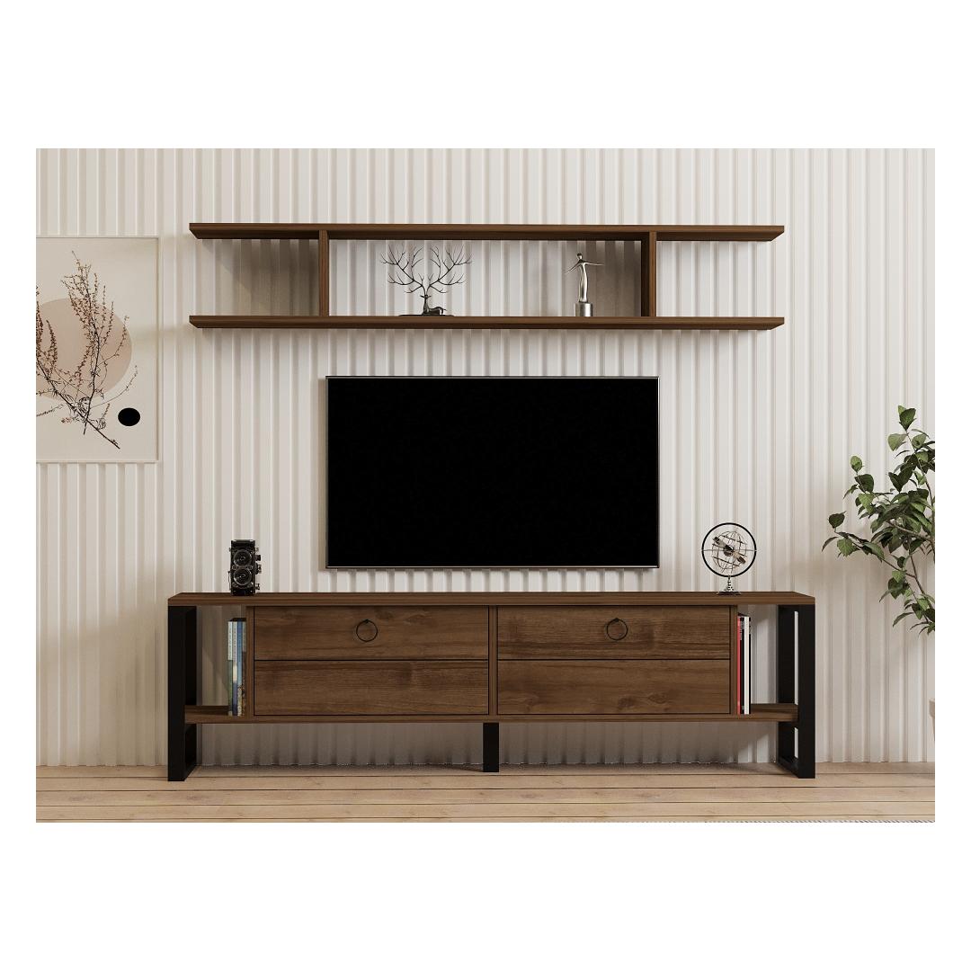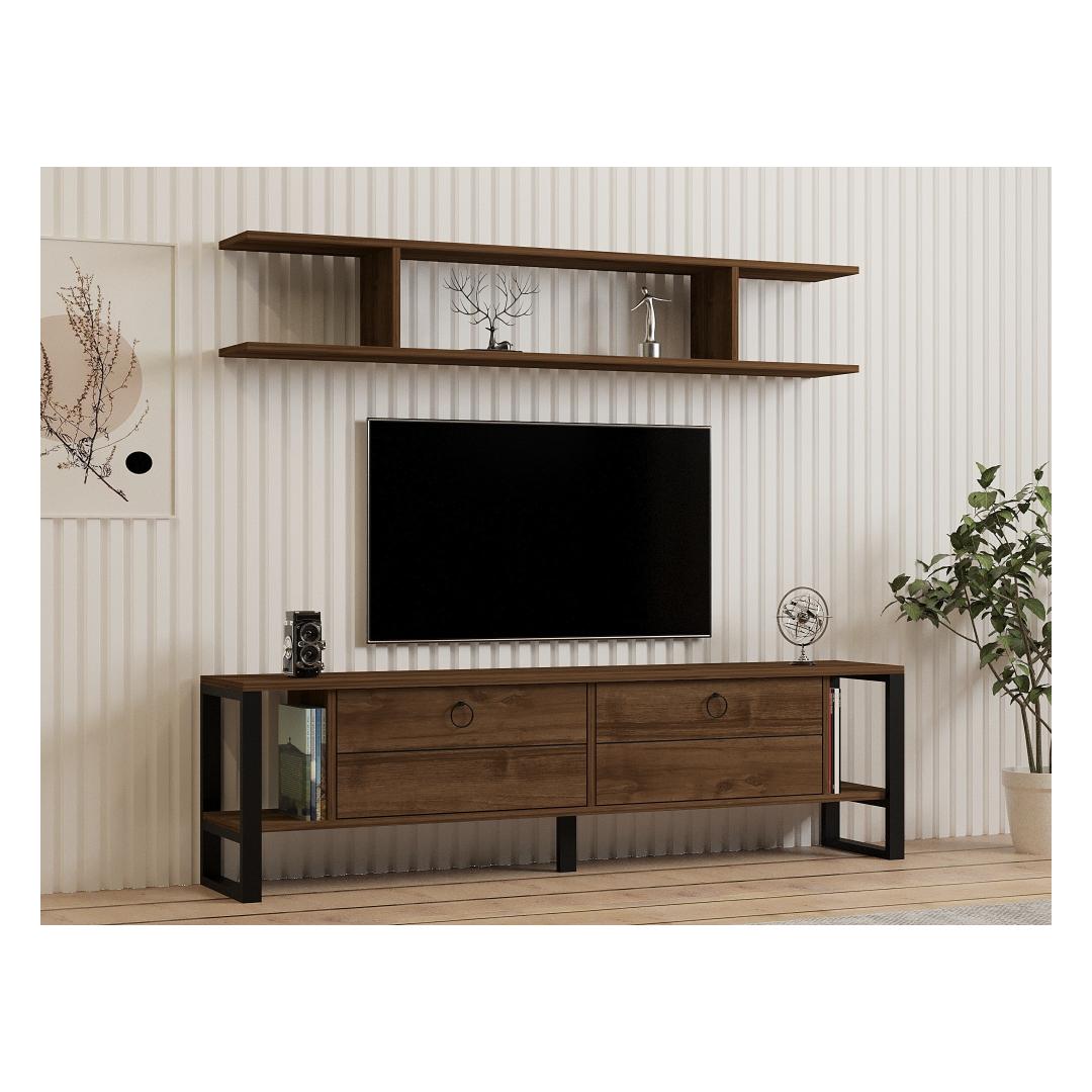 Transformeeri oma eluruum tööstusliku rustikaalse televiisorigaParandage oma elutoa atmosfääri meie uimastava industriaalse rustikaalse teleriga. See ülima täpsusega valmistatud televiisor on loodud lisama teie kodu sisustusse elegantsust ja elegantsust. Täiuslik kvaliteet ja vastupidavusValmistatud 100% melamiiniga kaetud puitlaastplaadist, tagab see telerikapp erakordse vastupidavuse ja pikaajalise toimivuse. 18 mm paksus tagab tugevuse, pakkudes usaldusväärset tuge teie televiisorile ja teistele elektroonikaseadmetele.Stiilne disain ja mitmekülgsusSee metallist jalgadega televiisorilahendus annab tööstusliku võlu, mis täiendab vaevata mis tahes sisustustüüpi. Pähklipuu värvus lisab maalähedast tooni, luues teie eluruumi sooja ja kutsuva atmosfääri. Rikkalik hoiuruumTänu arvukatele riiulitele ja täiendavale hoiuruumile pakub see telerikapp piisavalt ruumi oma meediaseadmete, dvd-de ja muude oluliste esemete korraldamiseks. Seina riiul pakub täiuslikku kohta oma lemmikdekoratiivsete esemete esitlemiseks, lisades teie elutuppa isikliku tooni. Lihtne paigaldamine ja stabiilsusSee telerikomplekt on mõeldud seinale kinnitamiseks, mis tagab stabiilsuse ja ohutuse. Lihtne paigaldusprotsess võimaldab teil oma uut mööblieset kiiresti ja ilma probleemideta nautida. Tehnilised üksikasjad:Materjal: Materjal: Materjal: Materjal: Materjal: Materjal: Materjal: Materjal: materjal: 100% melamiiniga kaetud puitlaastplaatPaksus: 18mmMetallist jalad lisavad stabiilsustTeleri stendi suurus: Laius: 160 cm, kõrgus: 45 cm, sügavus: 30 cm.Seina riiuli suurus: Laius: 150 cm, kõrgus: 25 cm, sügavus: 20 cmVärv: PähkelpuuKontseptsioon: Tööstuslik, rustikaalne Värv: Walnut
