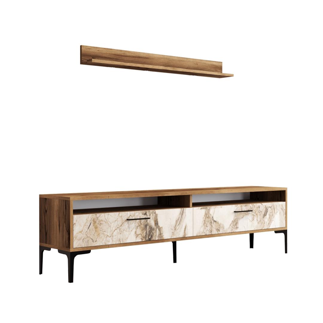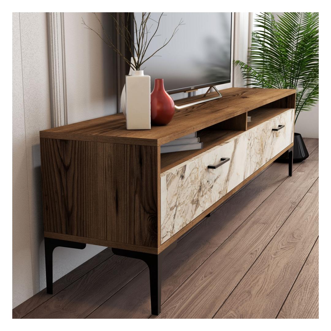 TV laud Istanbul - Walnut, White Marble