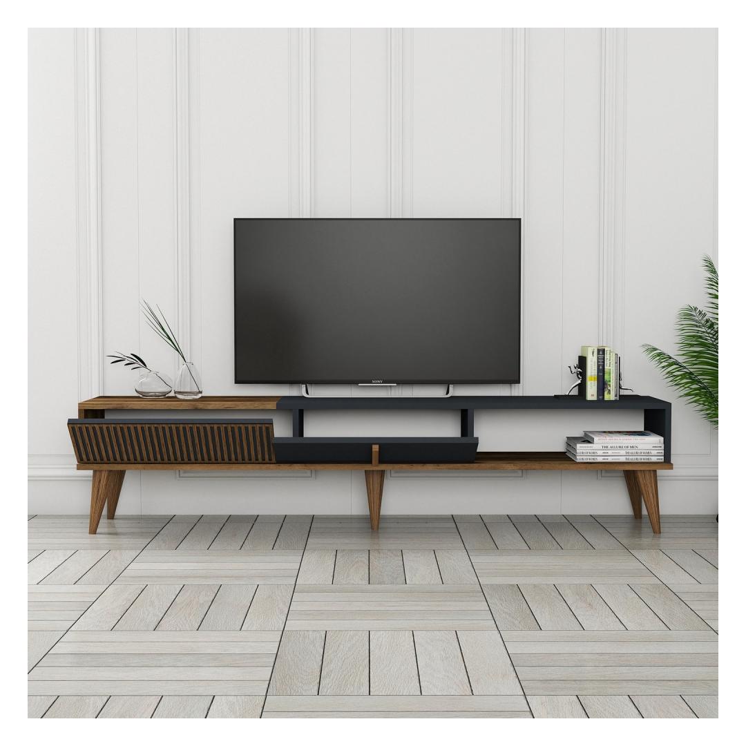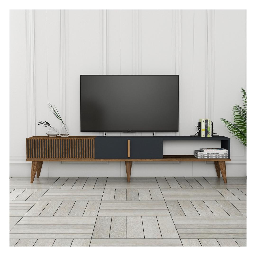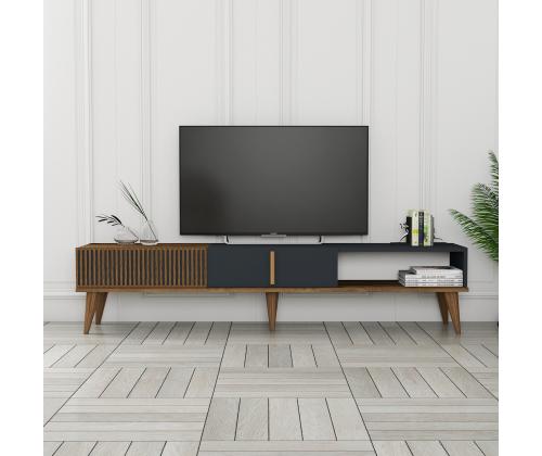 Transformeeri oma elutuba stiilse ja funktsionaalse televiisoripulga abilUuendage oma elutuba meie uimastava teleripuldiga, mis ühendab endas stiili ja funktsionaalsuse. See 100% melamiiniga kaetud puitlaastplaadist valmistatud teleritugi on valmistatud kestma ja taluma igapäevast kulumist. Tõstke oma sisekujundust elegantse disainigaSee elegantse disainiga televiisoripult tõstab koheselt teie elutoa väljanägemist. Pähklipuu ja antratsiidi värvide kombinatsioon lisab igale ruumile elegantsust ja modernsust. Olenemata sellest, kas teil on kaasaegne või traditsiooniline stiil, see teleripult sulandub sujuvalt teie olemasoleva sisustusega.Rikkalik panipaik kõigi teie meelelahutusvajaduste jaoksArvukate riiulitega pakub see teleripult piisavalt ruumi kõigi teie meelelahutusvahendite jaoks. Alates mängukonsoolidest kuni dvd-mängijateni saate oma seadmeid hõlpsasti organiseerida ja välja panna. Ütle hüvasti segastele kaablitele ja segastele elutubadele!Tugev ja vastupidav konstruktsioonValmistatud 18 mm paksust melamiiniga kaetud puitlaastplaadist, on see teleripult ehitatud nii, et see peab vastu. Tugev konstruktsioon tagab stabiilsuse ja vastupidavuse, mis võimaldab teil oma teleripulka aastaid nautida. Kergesti kokkupandav ja hooldatavMeie teleristendil on plastmassist jalad, mis tagavad täiendava stabiilsuse ja kaasaegse puudutuse. Jalgade kõrgus on 20 cm, mistõttu saate statiivi all hõlpsasti ja ilma probleemideta puhastada. Melamiinkattega on seda lihtne puhastada ja hooldada, tagades, et teie teleripult näeb alati välja nagu uus. Tehnilised üksikasjad:Materjal: Materjal: materjal: 100% melamiiniga kaetud puitlaastplaatPaksus: 18mmLaius: 180cmKõrgus: 40cmSügavus: 35cmJalad: Plastist jalad: Plastist jaladJalgade kõrgus: 20cmVärv: Pähklipuu ja antratsiit Värv: Walnut Anthracite