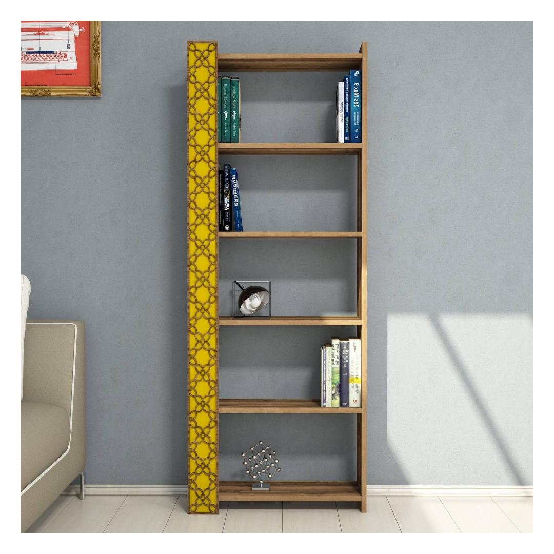 Raamaturiiul City - Walnut, Yellow