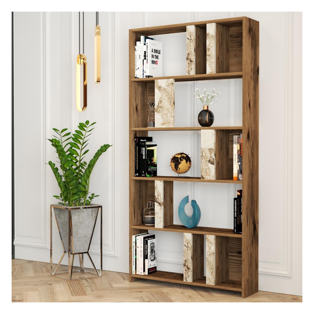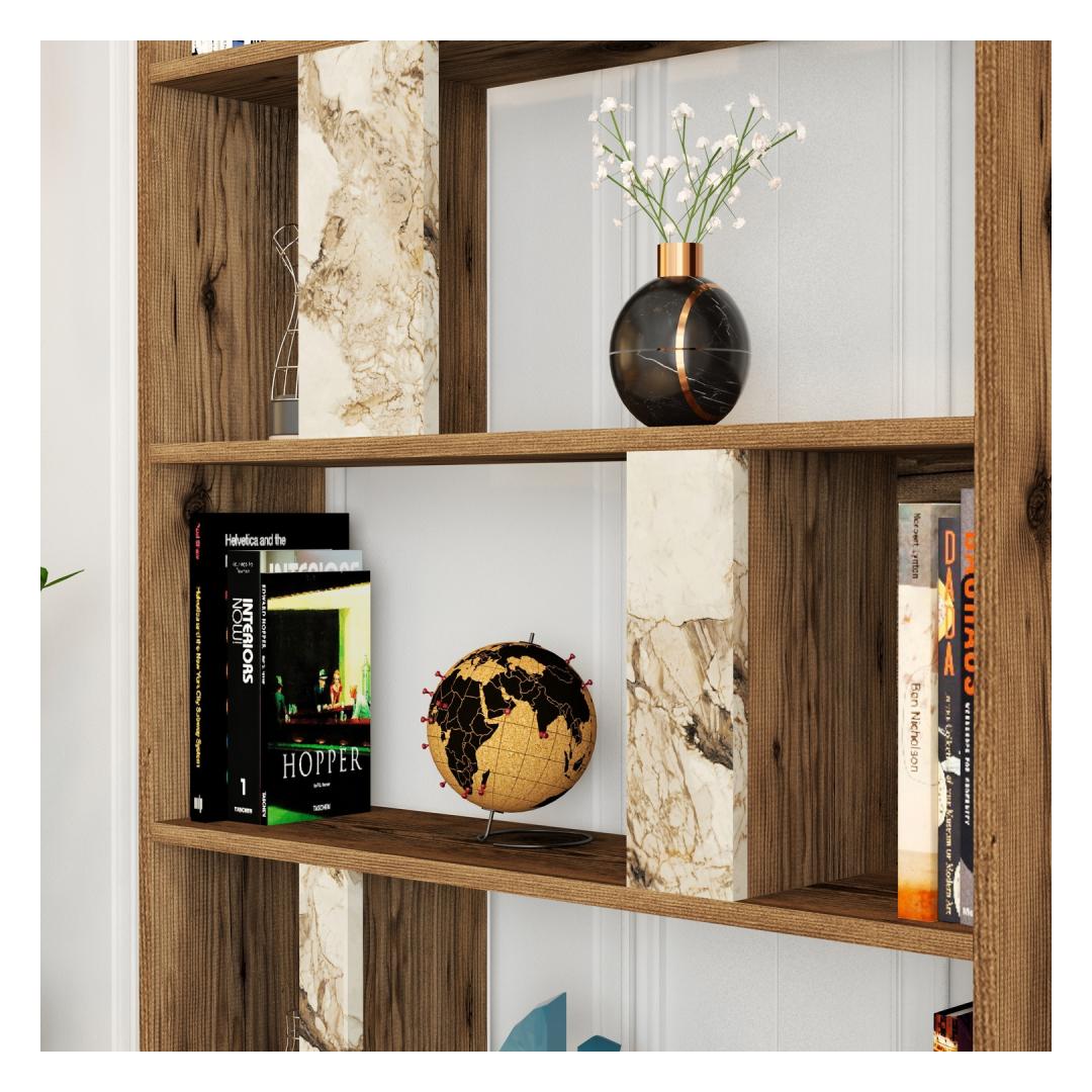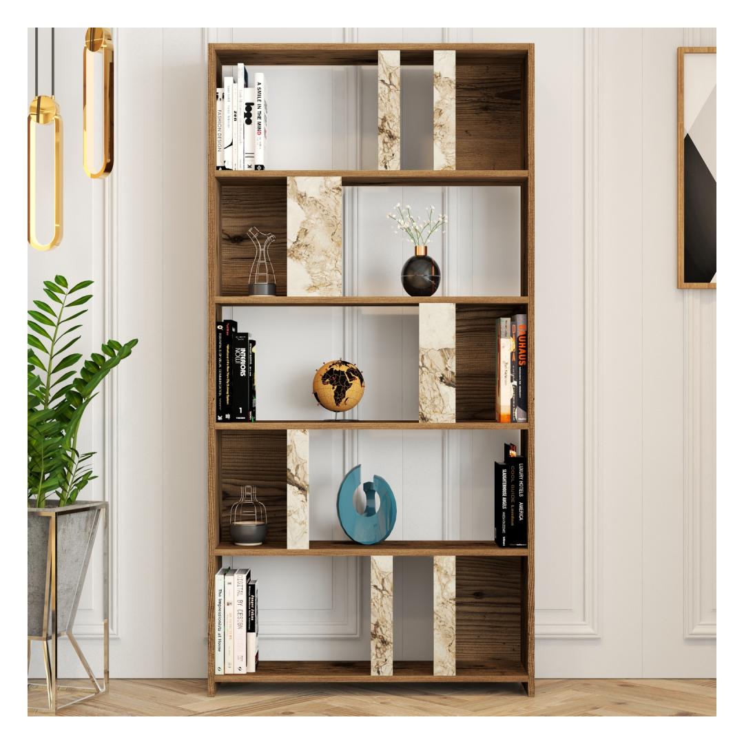 Raamaturiiul Lima - Walnut, White Marble