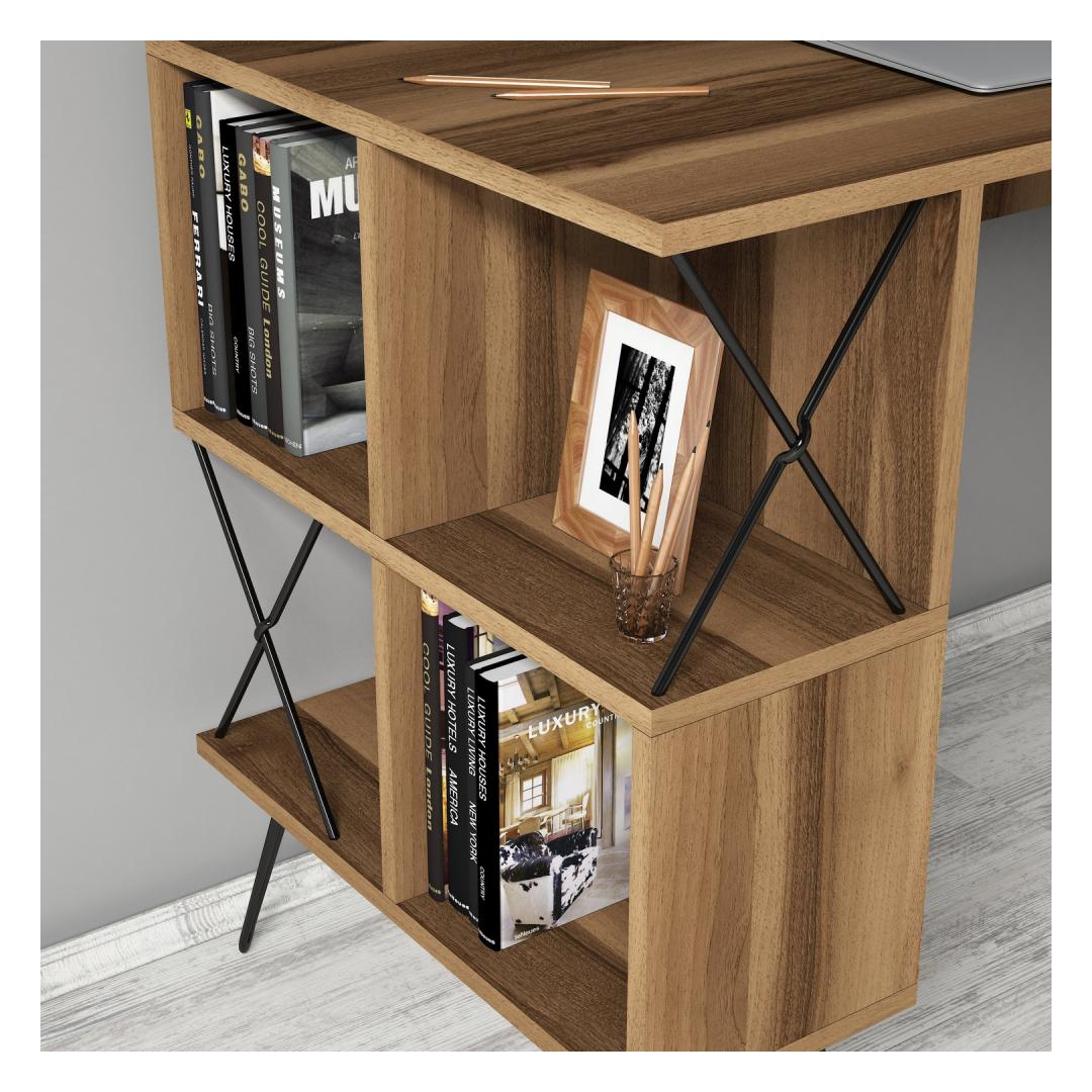 Loo produktiivne ja inspireeriv õpperuum meie moodsa õppelauagaMuutke oma õpperuum stiilseks ja funktsionaalseks ruumiks meie moodsa õppelaua abil. See ülima täpsusega ja detailidele tähelepanu pöörates valmistatud töölaud on mõeldud teie tootlikkuse suurendamiseks ja loovuse innustamiseks. Välistage oma potentsiaal ruumika ja vastupidava töölauagaMeie töölaud on valmistatud 100% melamiiniga kaetud puitlaastplaadist, mis tagab vastupidavuse ja pikaealisuse. See 18 mm paksune kirjutuslaud pakub tugevat ja stabiilset pinda kõigi teie õppimisvajaduste jaoks. Suurepärased mõõtmed on 120 cm laius, 78 cm. 8cm kõrgus ja 60cm sügavus pakuvad piisavalt ruumi raamatute, sülearvuti ja muude õppetööks vajalike esemete jaoks. Püsige korrastatuna arvukate riiulite ja seinariiuligaÜtle hüvasti segadusele ja tere korraldusele selle õppetöölaua arvukate riiulitega. Hoidke oma raamatud, kirjatarbed ja muud õppematerjalid kenasti paigas, et neile oleks lihtne ligi pääseda. Lisaks pakub kaasasolev seinariiul mõõtmetega 60 cm laius, 60 cm kõrgus ja 24 cm sügavus täiendavat hoiuruumi teie lemmikdekoratsioonide või täiendavate raamatute jaoks. Tugevdage oma toa esteetikat kaasaegse ja tööstusliku disainigaMeie töölaud, millel on modernne ja uudne disain koos tööstuslike aktsentidega, lisab igasse ruumi elegantsi. Pähklipuu ja musta värvi kombinatsioon loob silmatorkava kontrasti, mis muudab selle ideaalseks täienduseks kaasaegsetele interjööridele. Tehnilised üksikasjad:Materjal: materjal: 100% melamiiniga kaetud puitlaastplaatPaksus: 18mmTöölaua mõõtmed: Materjal: Puidust puidust laud, mis on valmistatud puidust, kuid ei sisalda pinda: 8cm, sügavus: 60cm.Seina riiuli mõõtmed: Laius: 60cm, kõrgus: 60cm, sügavus: 24cmVärv: Pähklipuu ja mustKontseptsioon: Kaasaegne - uudsus, tööstuslik Värv: Walnut Black