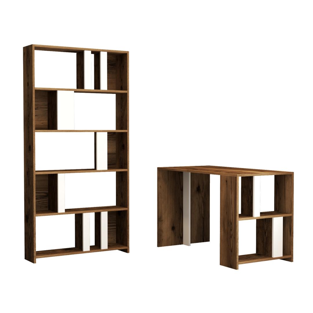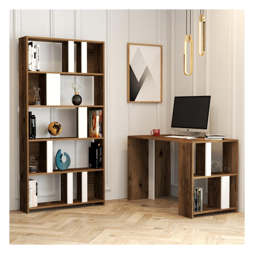 The modern and novelty design of this study desk and bookshelf adds a stylish touch to any room. The combination of walnut and white colors creates a contemporary look that complements any decor.