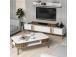 Featuring a TV unit, TV shelf, wall shelf, and coffee table, this set offers ample storage and display options for all your belongings. The numerous shelves provide a convenient space to showcase your favorite books, decor, and electronics.