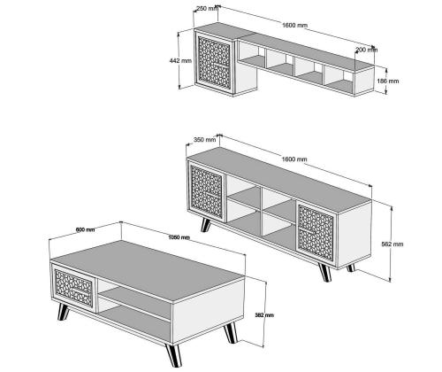 - TV Unit Size: Width: 160 cm, Height: 56.2 cm, Depth: 35 cm