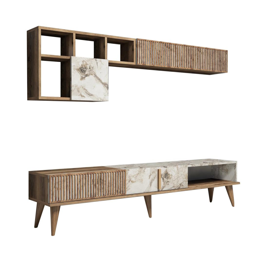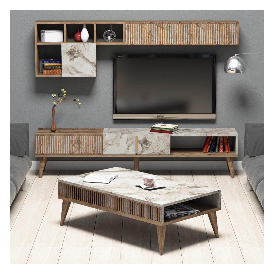 Living Room Furniture Set Milan - Walnut, White Marble