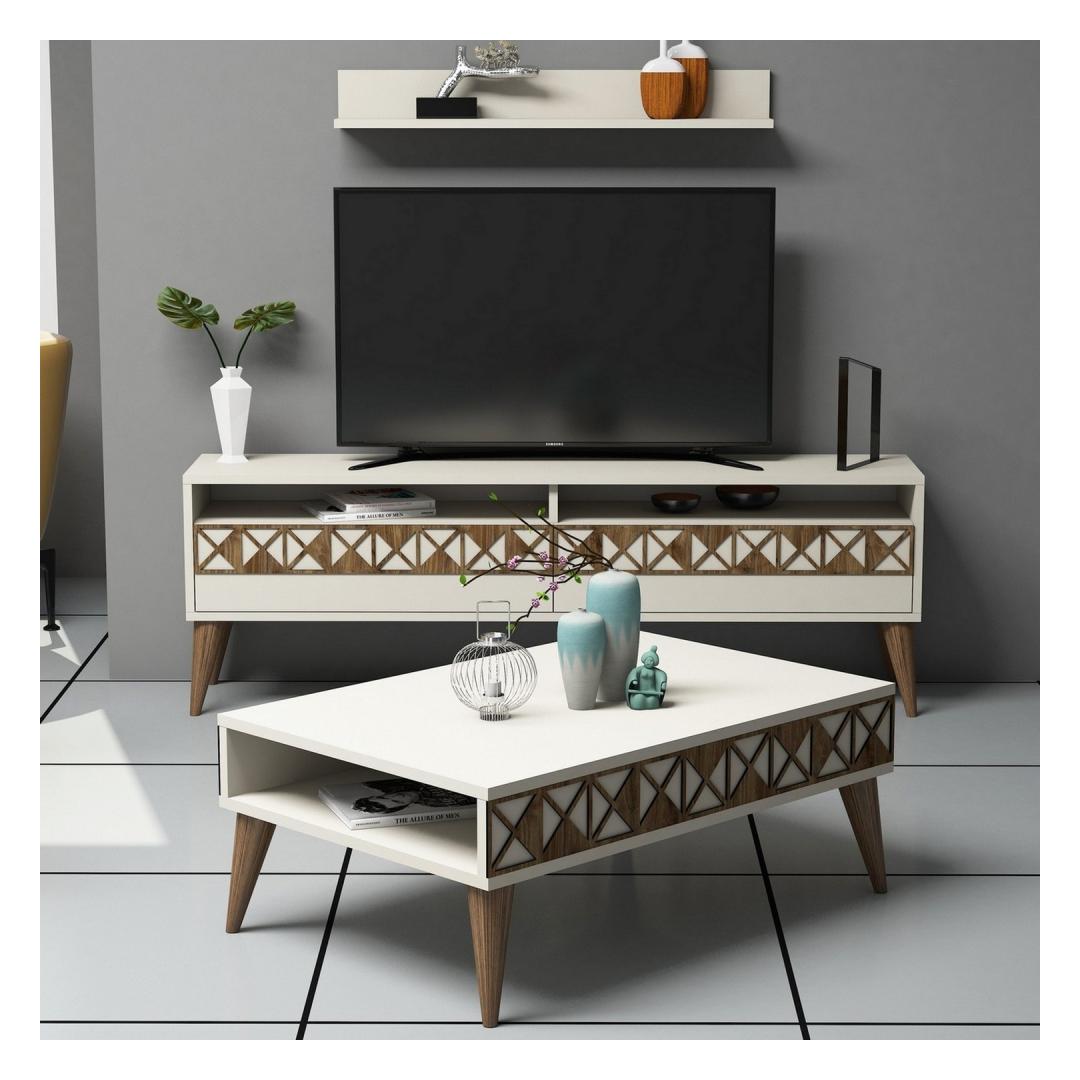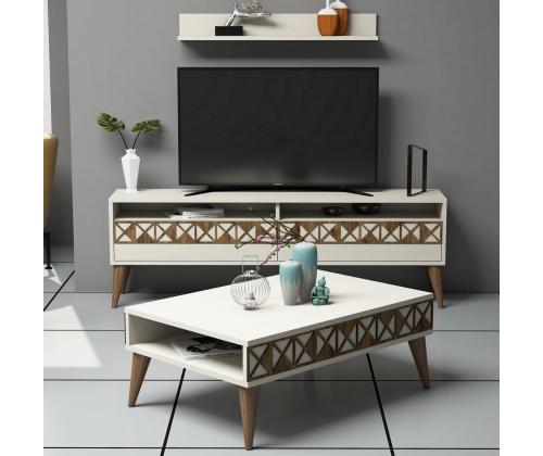 The TV stand, wall shelf, and coffee table can be fixed to the wall, giving you the freedom to arrange them according to your preference. This versatile design allows you to create a layout that suits your space and lifestyle.