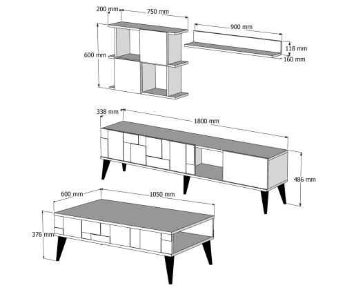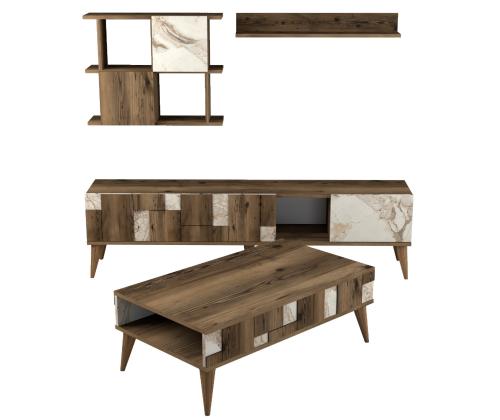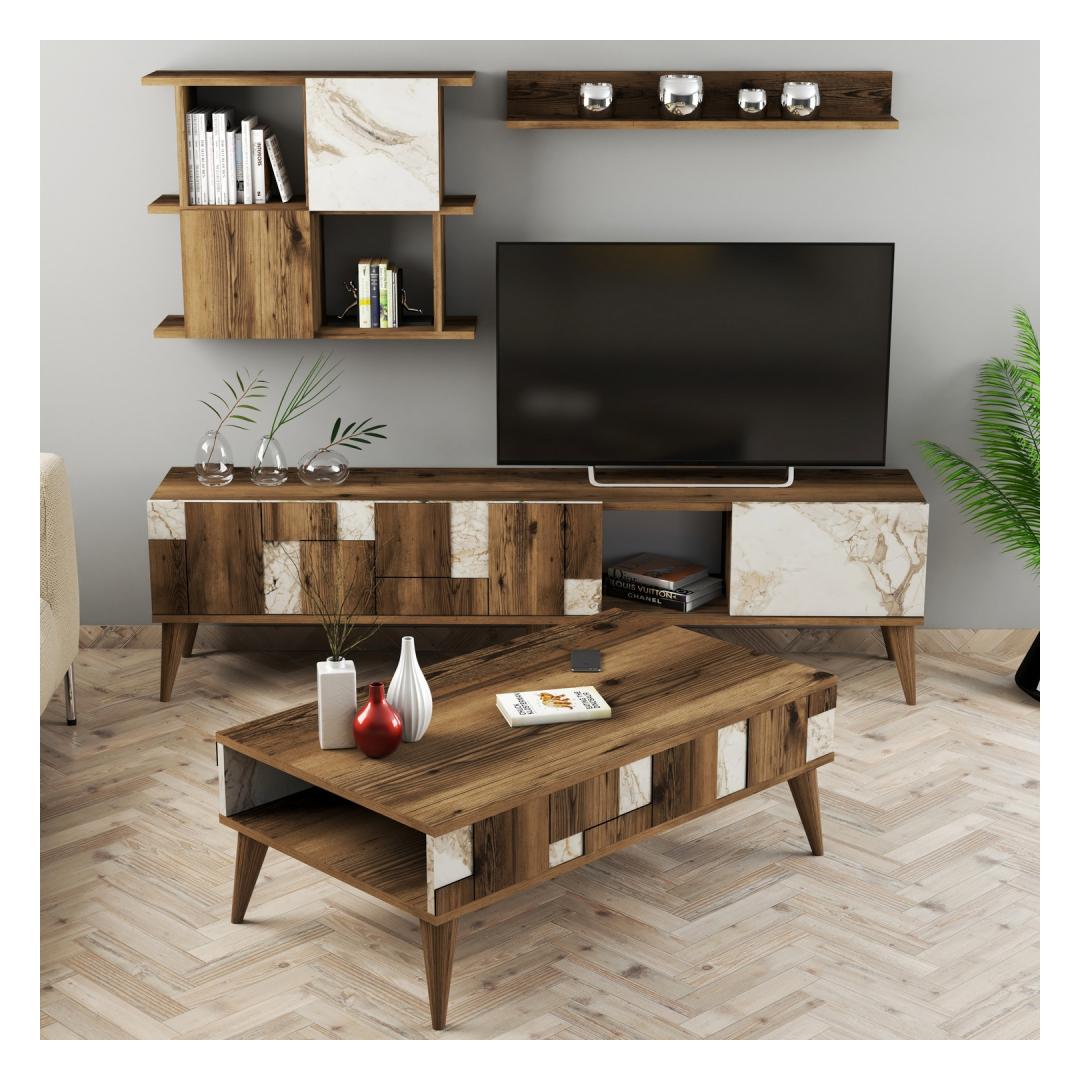 This set comes with a TV unit, cabinet, wall shelf, and coffee table, providing ample storage and display options for all your essentials. The numerous shelves allow you to showcase your favorite decor pieces, books, and collectibles, while keeping everything organized and within reach.