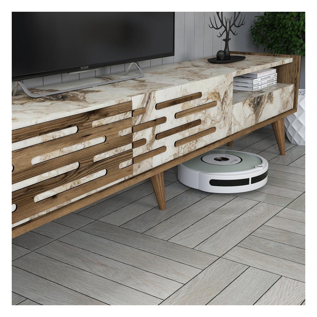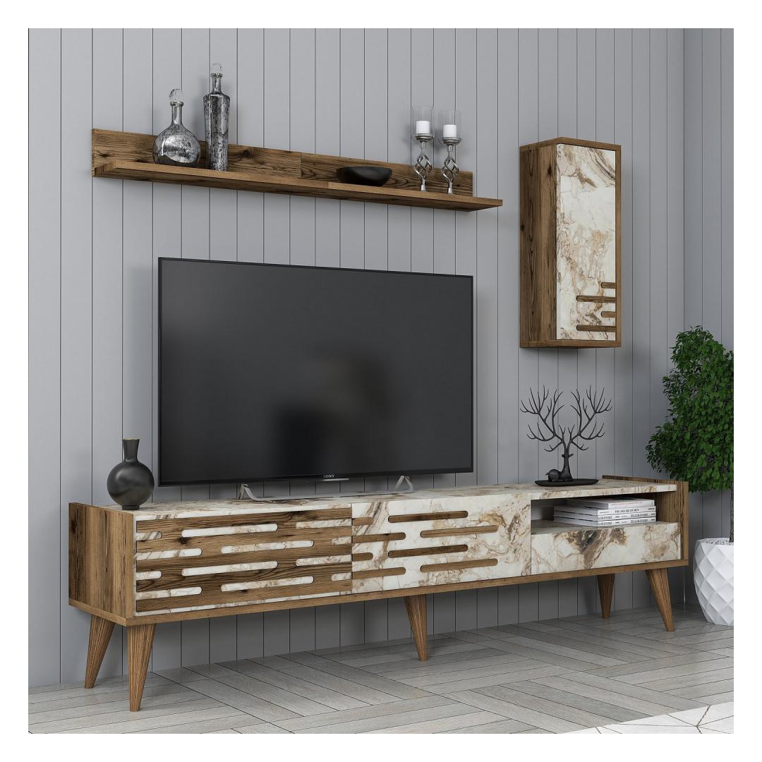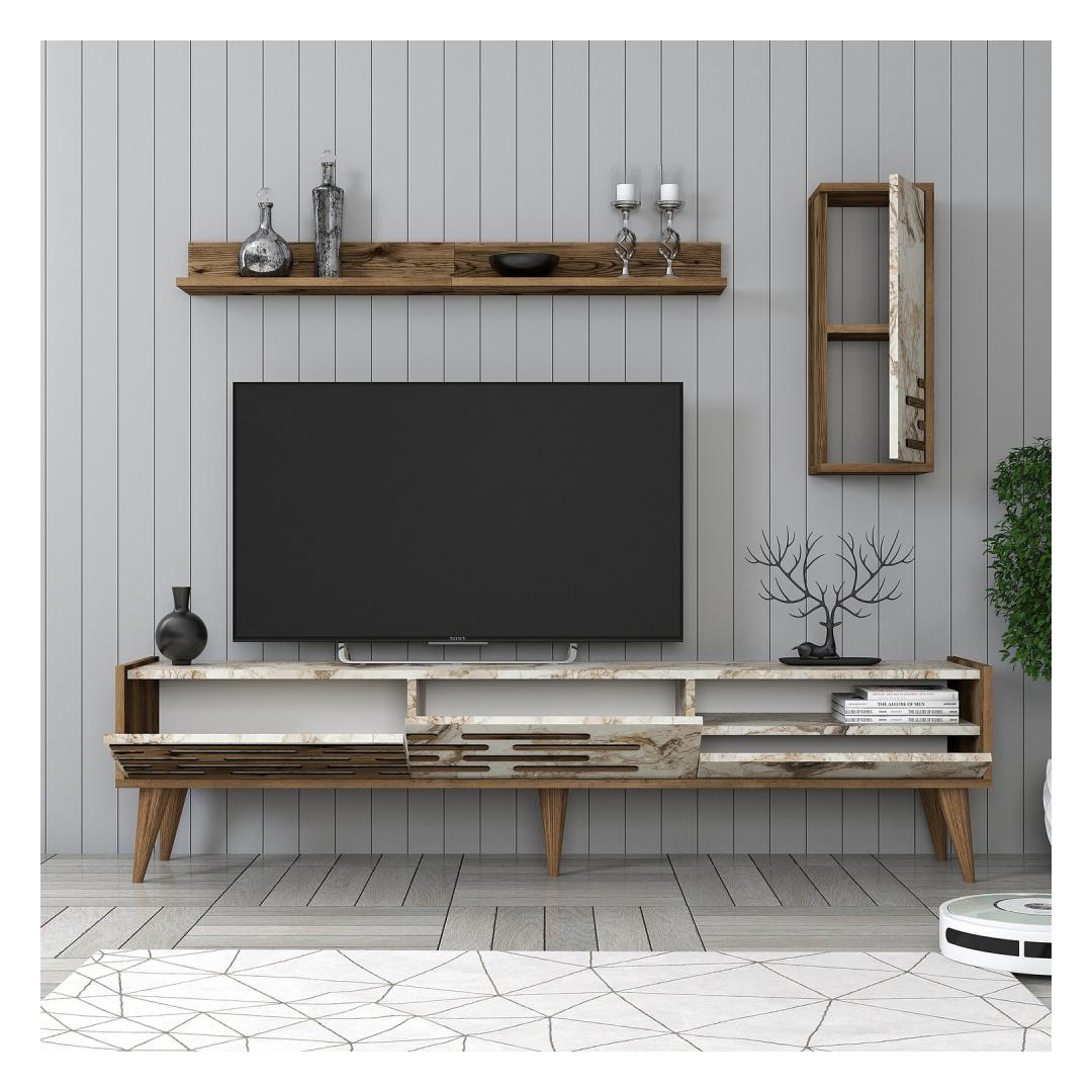 TV laud Valensiya - Walnut, White, Marble
