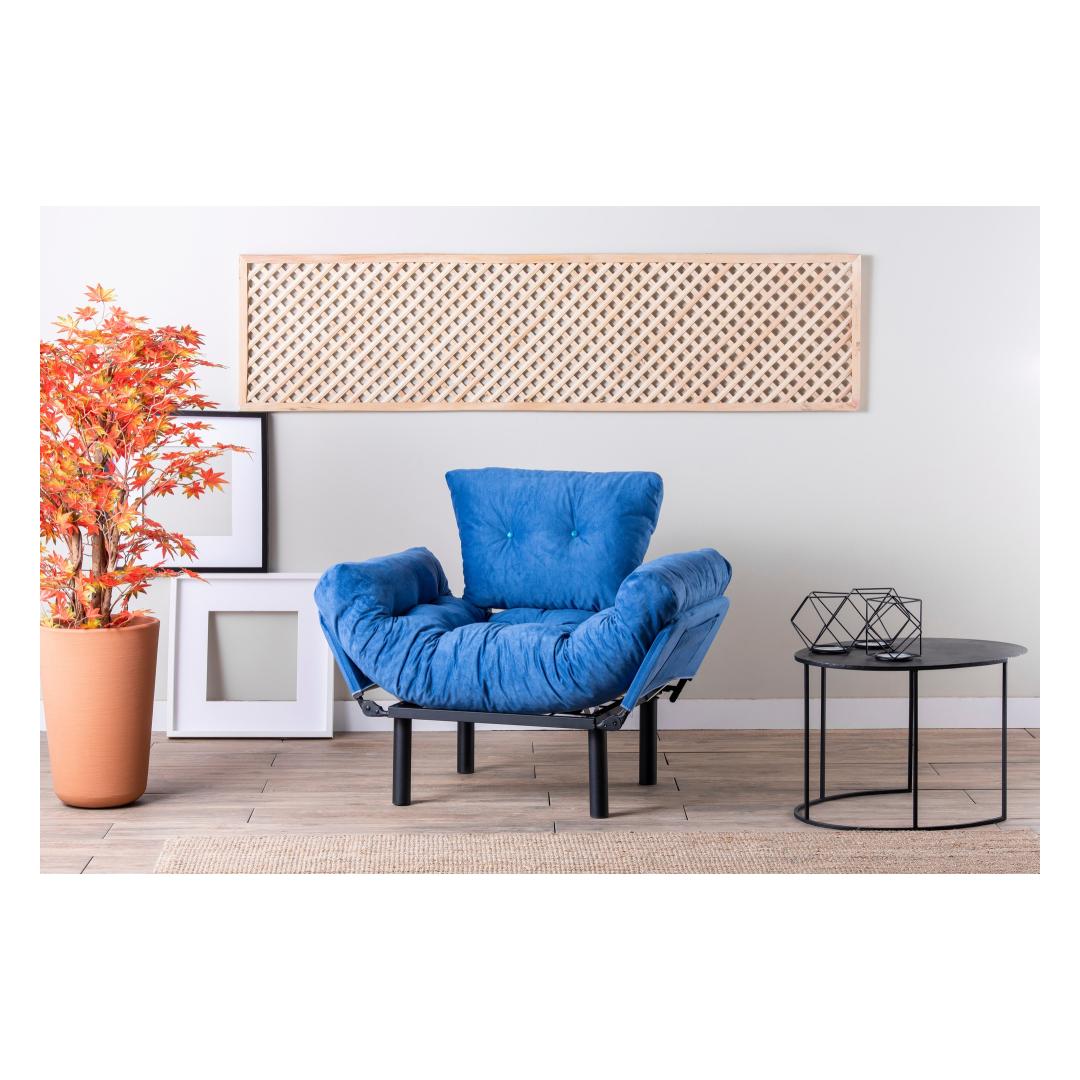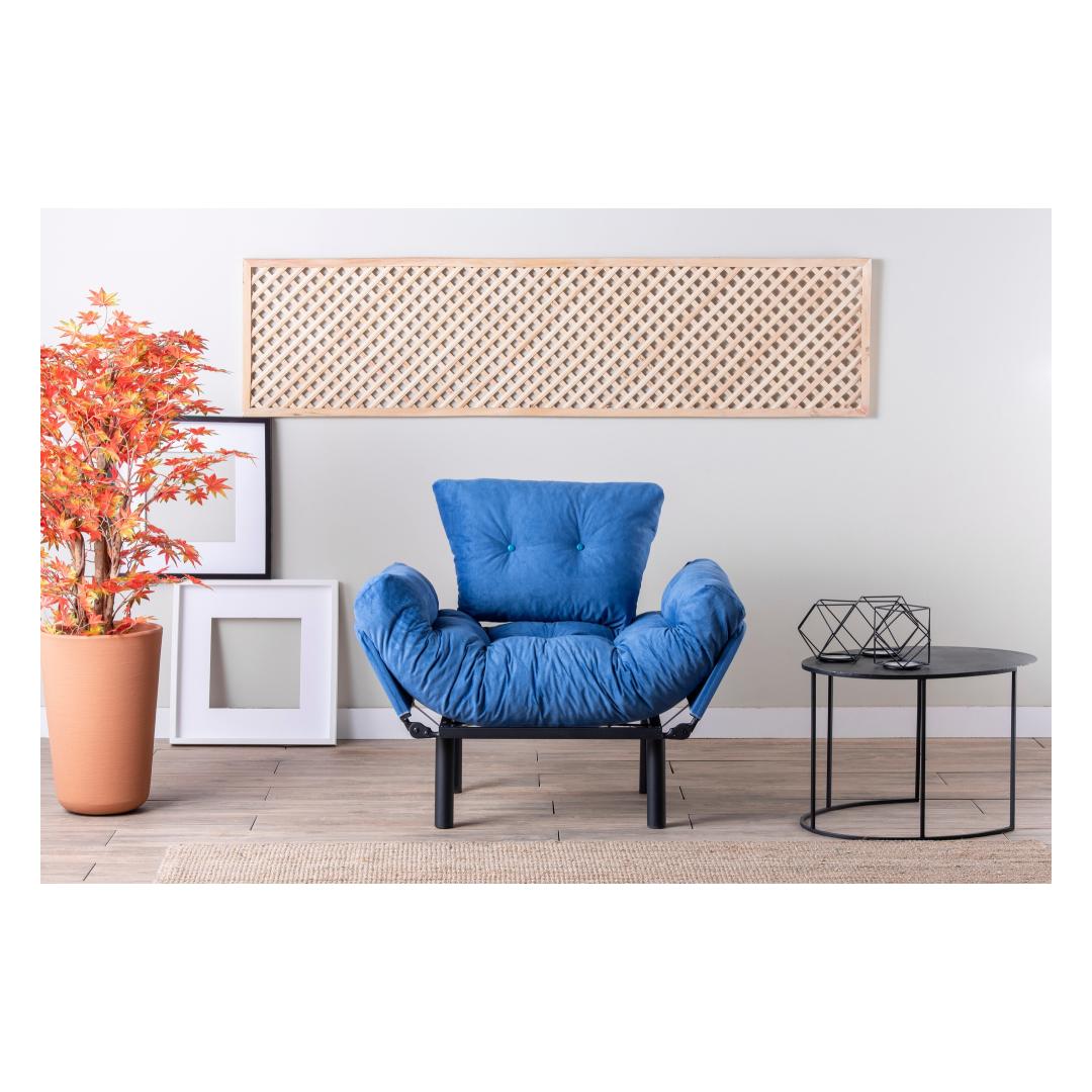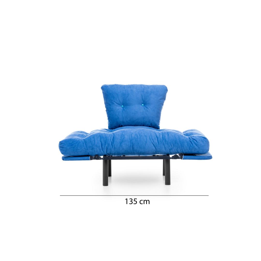 Koge meie tiibtooliga võrratut mugavust ja stiiliMuutke oma eluruum lõõgastumise ja rafineerituse paradiisiks meie suurepärase tiibtooliga. See tool on disainitud pakkuma ülimat mugavust ja stiili ning on ideaalne täiendus igasse modernse või tööstusliku teemaga koju. Lõbutsege võrratu mugavusesVajutage meie tiibtooli pehmusse ja kogege sellist mugavust, mida ei ole veel nähtud. See tool on valmistatud 24 dns vahtplastist nii istme kui ka seljatoe jaoks, pakkudes erakordset tuge ja pehmendust, mis võimaldab teil pärast pikka päeva lõõgastuda. 5-tasemeliselt reguleeritavad käetoed pakuvad lisamugavust, võimaldades teil leida täiuslik asend maksimaalseks lõõgastumiseks.Kõrgendage oma sisekujundust kaasaegse elegantsigaMeie sinist värvi tiibtool lisab igasse ruumi elegantsi ja elegantsi. Kaasaegne uudne disain sobib sujuvalt nii kaasaegse kui ka tööstusliku interjööriga, muutes selle mitmekülgseks valikuks igasse koju. Võrratu vastupidavus ja kvaliteetMeie 100% metallraamiga valmistatud tiibtool tagab pikaajalise vastupidavuse ja stabiilsuse. Polüesterkangast polsterdus mitte ainult ei lisa selle visuaalset atraktiivsust, vaid suurendab ka selle vastupidavust, muutes selle kulumiskindlaks. Tehnilised üksikasjad:Raam: Materjalid: 100% metall.Kangas: Kangas: polüesterkangasLaius: 95 cmKõrgus: 85 cmSügavus: 70 cmIstme sügavus: 53 cmIstme laius: 60 cmIstme kõrgus: 45 cmVoodi suurus: Laius: 135 cm, sügavus: 70 cm24 DNS vahtpolster istumiseks24 DNS vahtpolüstrit seljatoele5-tasemeliselt reguleeritavad käetoedPlastist jaladVärv: sinineElustage oma elutuba meie tiibtooliga ja kogege täiuslikku segu mugavusest, stiilist ja vastupidavusest. Uuendage oma kodu juba täna ja andke endale väärilist luksust. Värv: Blue