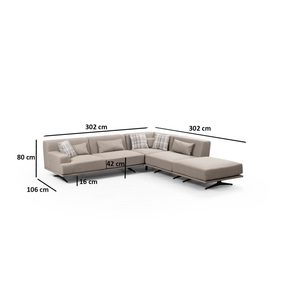 Muuda oma eluruum meie kauni beeži nurgadiivani abil. See mööbliese ei ole lihtsalt mööbel; see on stiili ja mugavuse väljendus. Sujuv disain ja neutraalne värv sulanduvad vaevata igasse sisustusse, samas kui kvaliteetsed materjalid tagavad vastupidavuse ja pikaealisuse.Ükski mugavus ja tugi ei ole võrreldavadLangeta end pehmetesse padjadesse, mis on täidetud pehme halli vahtmaterjali, taskuvedrudega ja suledega, et saada parim istumiskogemus. Kinnitatud istme- ja seljapadjandid pakuvad optimaalse toetuse tundideks lõõgastumiseks.Elegantne disainValmistatud pöögipuust ja puitlaastplaadi raamiga, kiirgab see diivan elegantsi ja rafineeritust. Kuivpuhastatav polüesterkangas on lihtne hooldada, tagades, et teie diivan näeb aastaid välja nagu uus.Mitmekülgne ja stiilne302 cm laiune, kõrge ja sügav diivan on ideaalne lõõgastumiseks või külaliste meelelahutamiseks. Mattmustad jalad lisavad tööstuslikult inspireeritud disainile modernsuse, muutes selle igas kodus mitmekülgseks osaks.Tooge oma elutuppa meie beež nurgadiivan ja kogege stiili, mugavuse ja vastupidavuse täiuslikku segu. Tellige oma täna ja muutke oma ruum lõõgastumise ja rafineerituse pelgupaigaks.Tehnilised andmed:Raam: pöögipuu / puitlaastplaatKangas: 100% polüesterLaius: 302 cmKõrgus: 80 cmSügavus: 302 cmIste kõrgus: 42 cmVaht: 28 DNS pehme hall vaht / taskuvedru / 24 DNS suledega istumiseks / 24 DNS suledega seljatoeksPadi: 60% lõigatud vaht / 40% silikoonvahtSuurus: 45 cm x 45 cm (3 tükki)Jalad: mattmustad jaladVaht kõrgus: 26 cmVärv: beež Värv: Beige