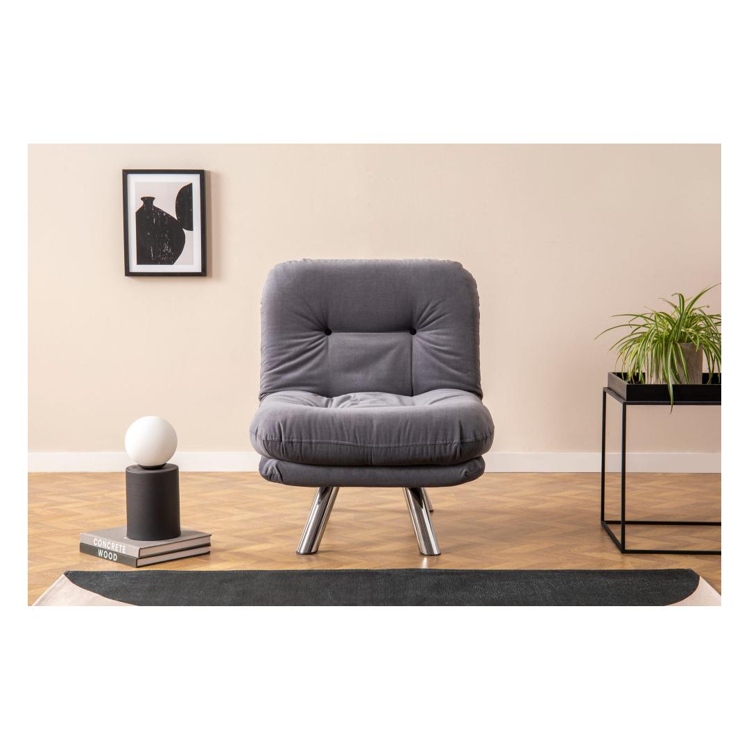 The solid grey color adds a touch of sophistication to any room, making it a perfect fit for modern and Scandinavian-inspired interiors. The sleek metal frame ensures durability and stability, while the 400 gr/m² silicone fiber filling provides optimal support and comfort.