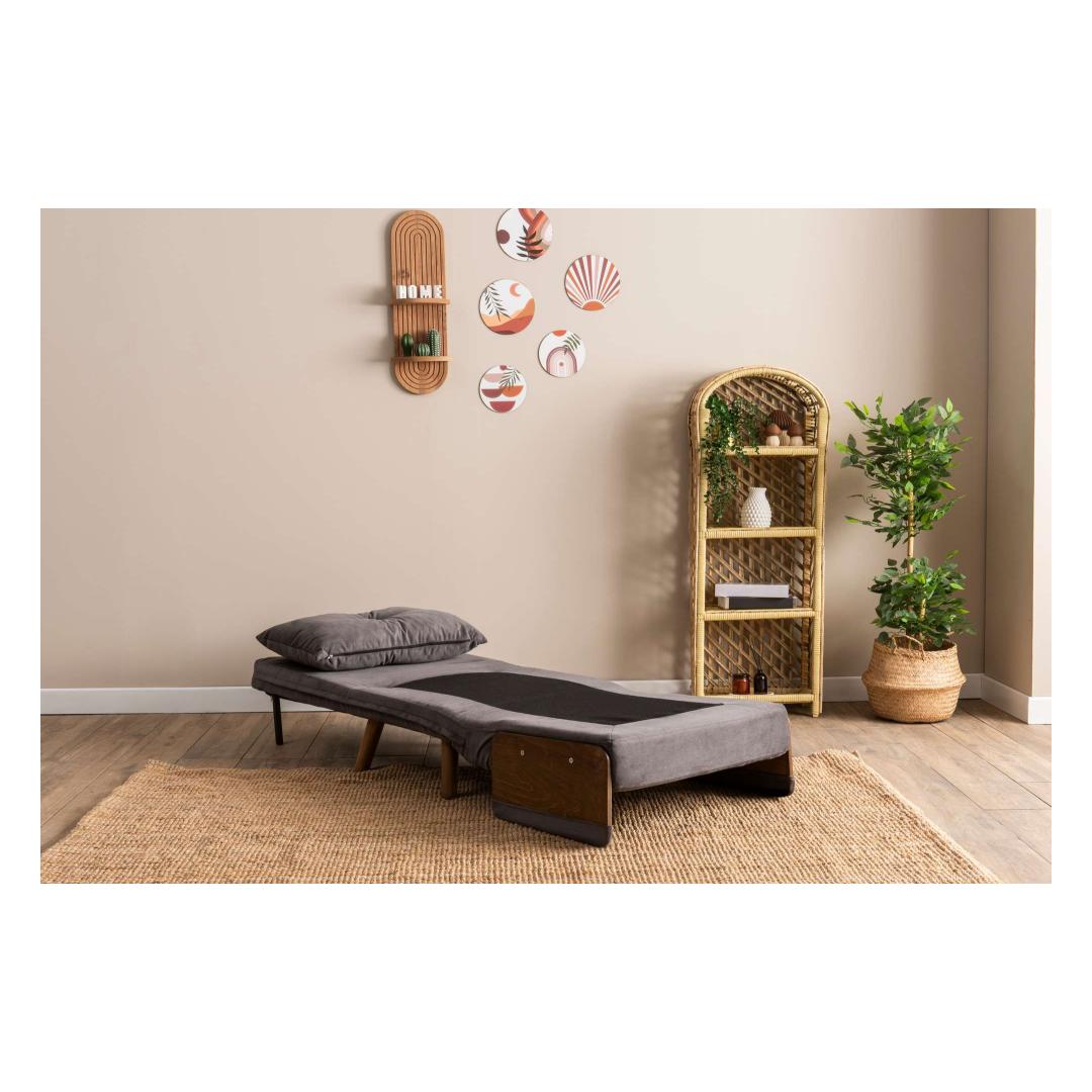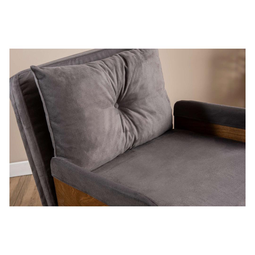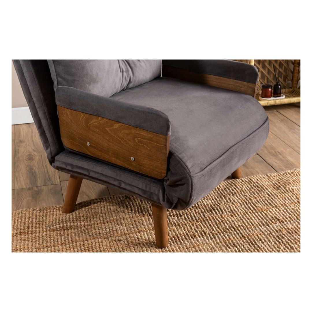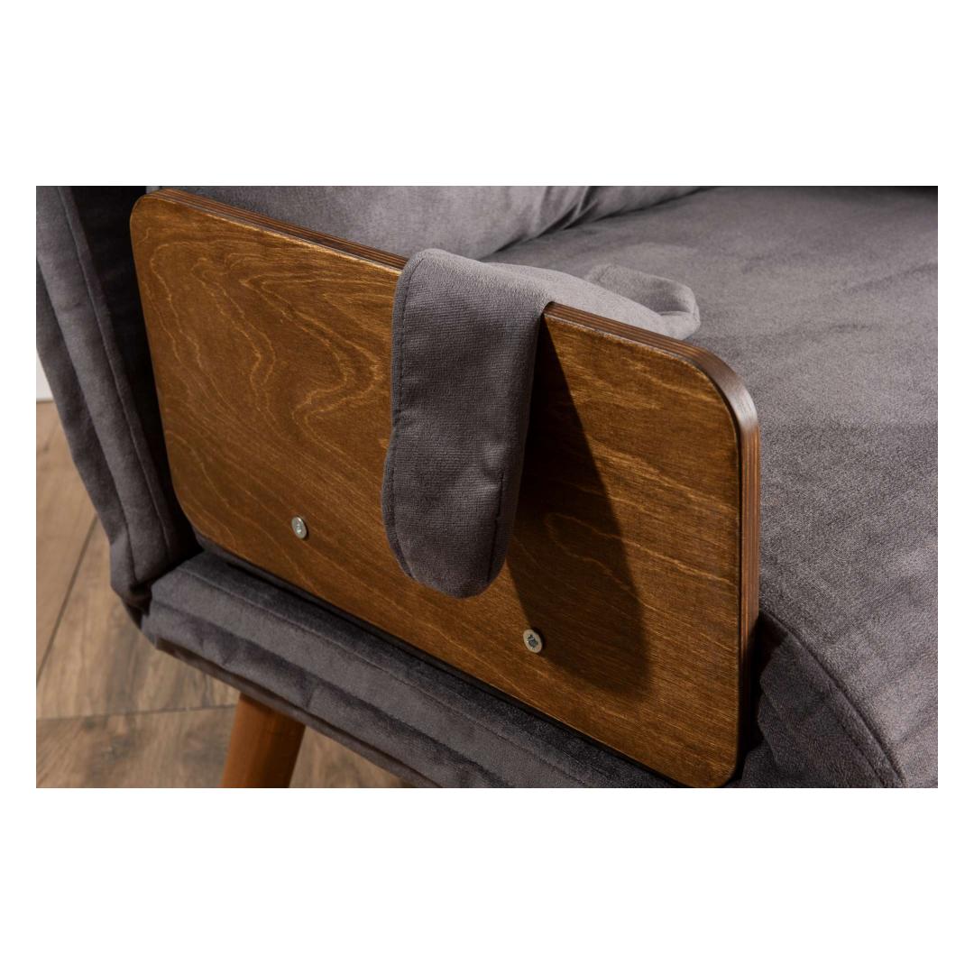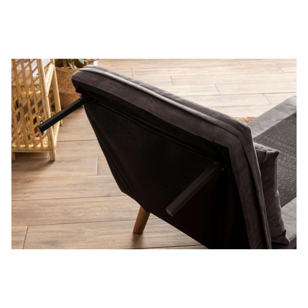 Constructed with a 100% metal frame and wooden armrests, this sofa-bed is built to last. The sturdy frame provides stability and support, while the modern design adds a touch of sophistication to your home decor. The grey color adds a chic and contemporary look to any room.