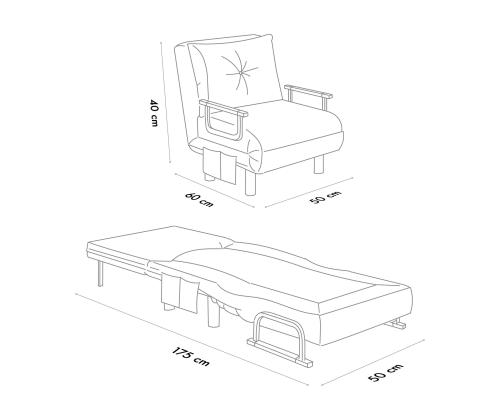 Measuring at 75 cm x 50 cm x 75 cm as a sofa and 175 x 50 cm as a bed, this 1-seat sofa bed is the perfect solution for small spaces. The 60 cm seat depth and 50 cm seat width provide ample room for lounging or sleeping comfortably.