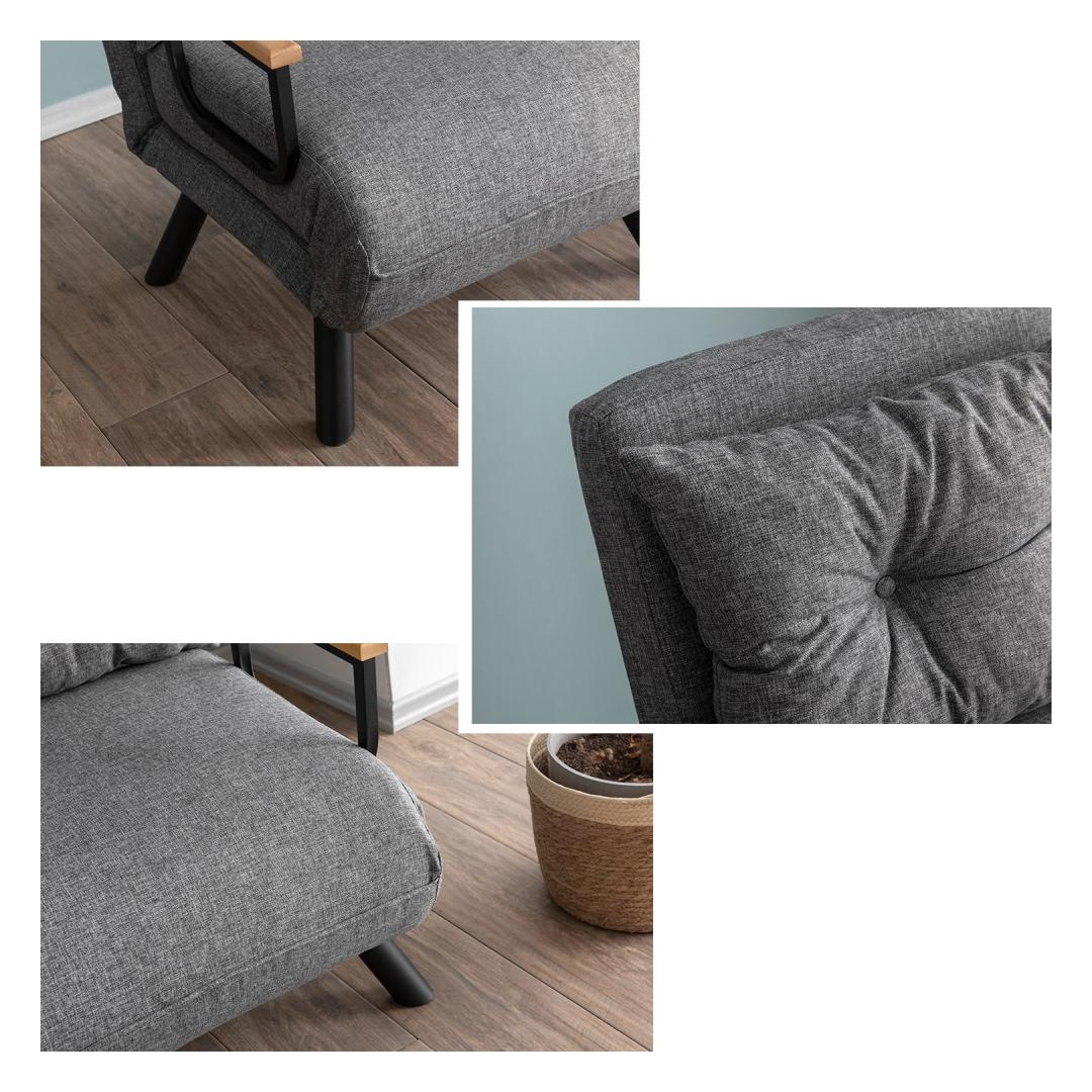 Crafted with a sturdy 100% metal frame and soft linen fabric, this sofa-bed offers the perfect combination of comfort and style. The seat cushion thickness of 23 cm and back cushion thickness of 9 cm provide ample support for hours of relaxation. The 14-level adjustable backrest allows you to customize your seating experience, while the easily convertible design makes it simple to transform this sofa into a bed for overnight guests.