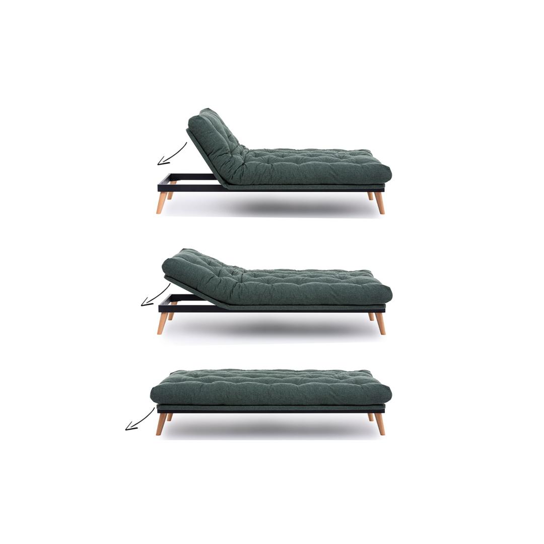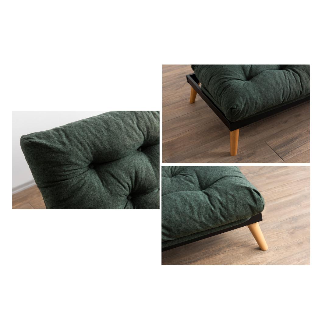 Crafted with a 100% metal frame and natural wood legs, this sofa-bed not only exudes elegance but also guarantees long-lasting durability. The stunning green color adds a touch of sophistication to any room, making it a focal point of your decor.
