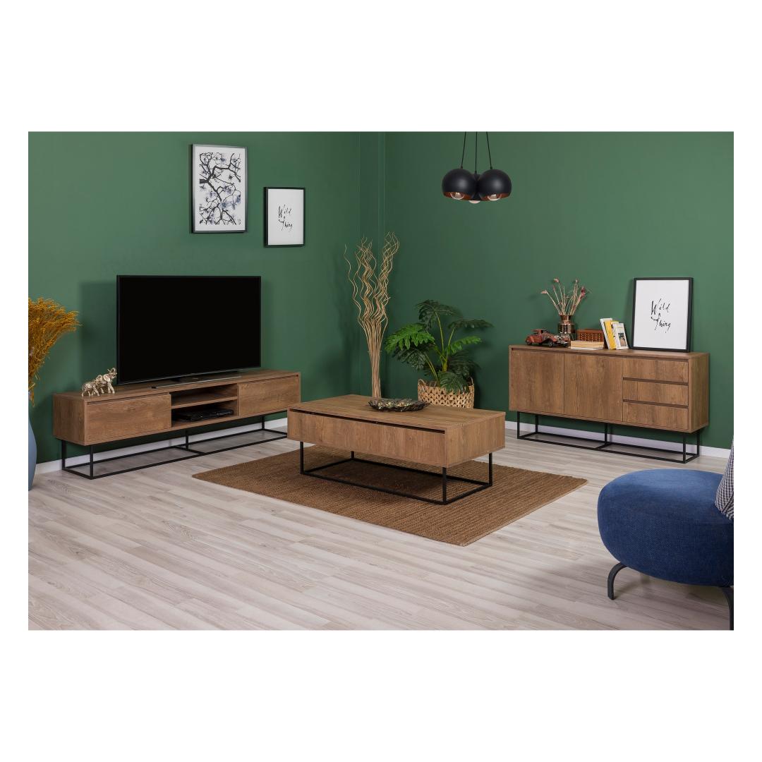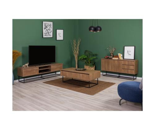 Muuda oma elutuba hubaseks ja stiilseks pelgupaigaks meie suurepärase elutoa mööbliseeriaga. Valmistatud 100% melamiinkattega puitlaastplaadist, kiirgab see komplekt elegantsi ja vastupidavust. Sujuv disain ja rafineeritud pähklipuu ja musta värvi kombinatsioon tõstavad teie ruumi atmosfääri, muutes selle ideaalseks kohaks koosolekuteks lähedastega või rahulikeks lõõgastusõhtuteks.Tõsta oma eluruumi tasetParanda oma kodu esteetilist külgetõmmet selle modernse ja šika mööbliseeriaga. 18 mm paksune puitlaastplaat tagab tugevuse ja pikaealisuse, samas kui PVC jalad pakuvad stabiilsust ja tuge. 15 cm jalakõrgus lisab üldisele disainile rafineerituse, muutes selle igas toas silmapaistvaks elemendiks.Ületamatu kvaliteet ja stiilKogege funktsionaalsuse ja stiili täiuslikku segu selle elutoa mööbliseeriaga. 90 cm laius, 39 cm sügavus ja 40 cm kõrgus pakuvad piisavalt hoiuruumi teie olulistele asjadele, hoides teie elutoa organiseerituna ja segaduseta. Olgu te külalisi vastu võtmas või pärast pikka päeva lõõgastumas, see komplekt rahuldab kõik teie vajadused elegantselt ja graatsiliselt.Tehnilised andmed:Materjal: 100% melamiinkattega puitlaastplaatPaksus: 18 mmJalad: PVC jaladJala kõrgus: 15 cmMõõtmed: 90 cm (L) x 39 cm (S) x 40 cm (K)Värv: Pähkel ja must Värv: Walnut Black