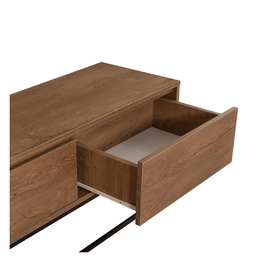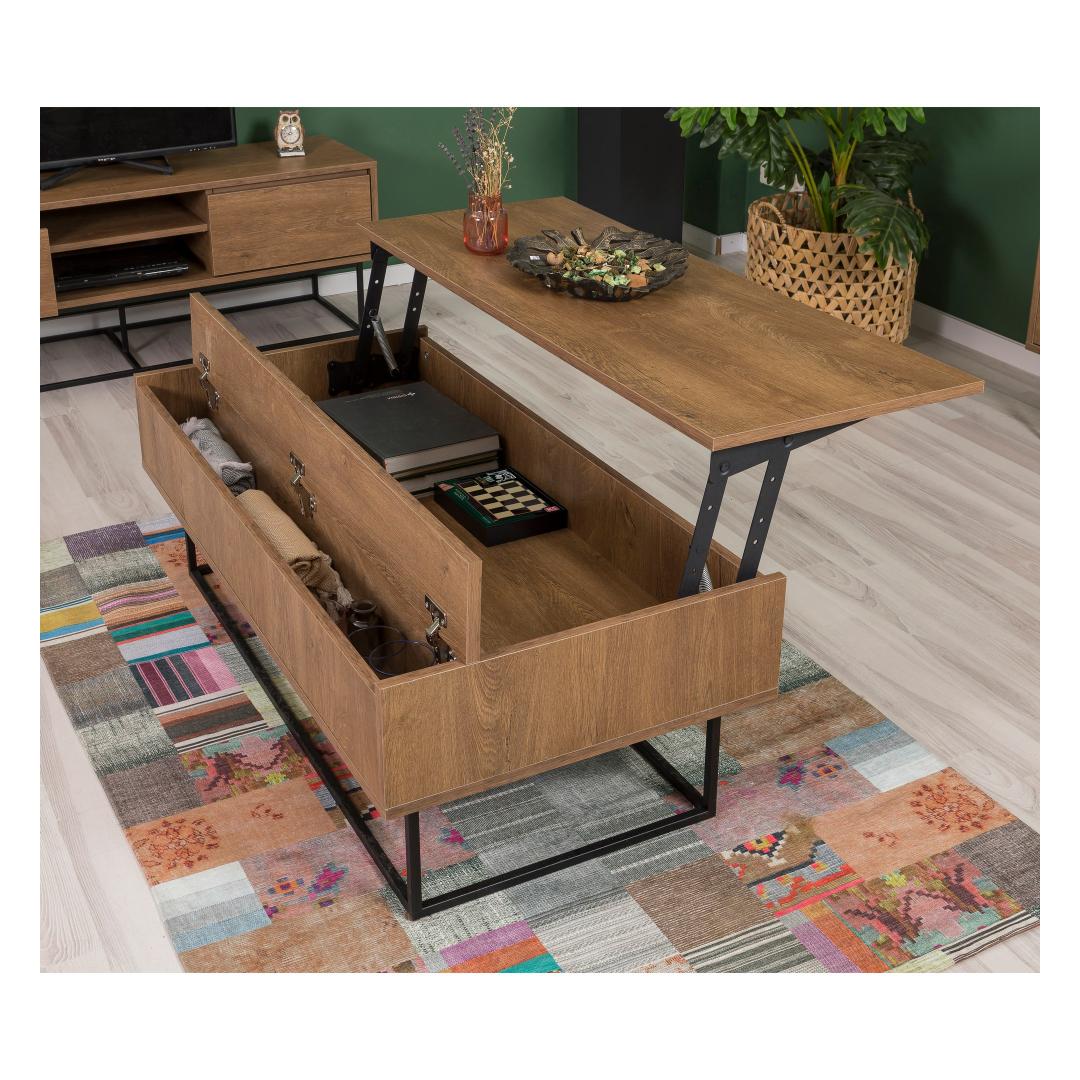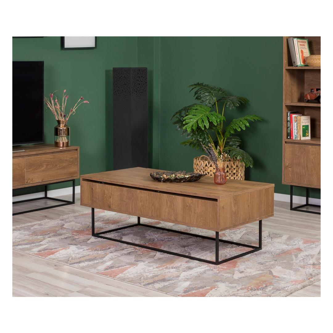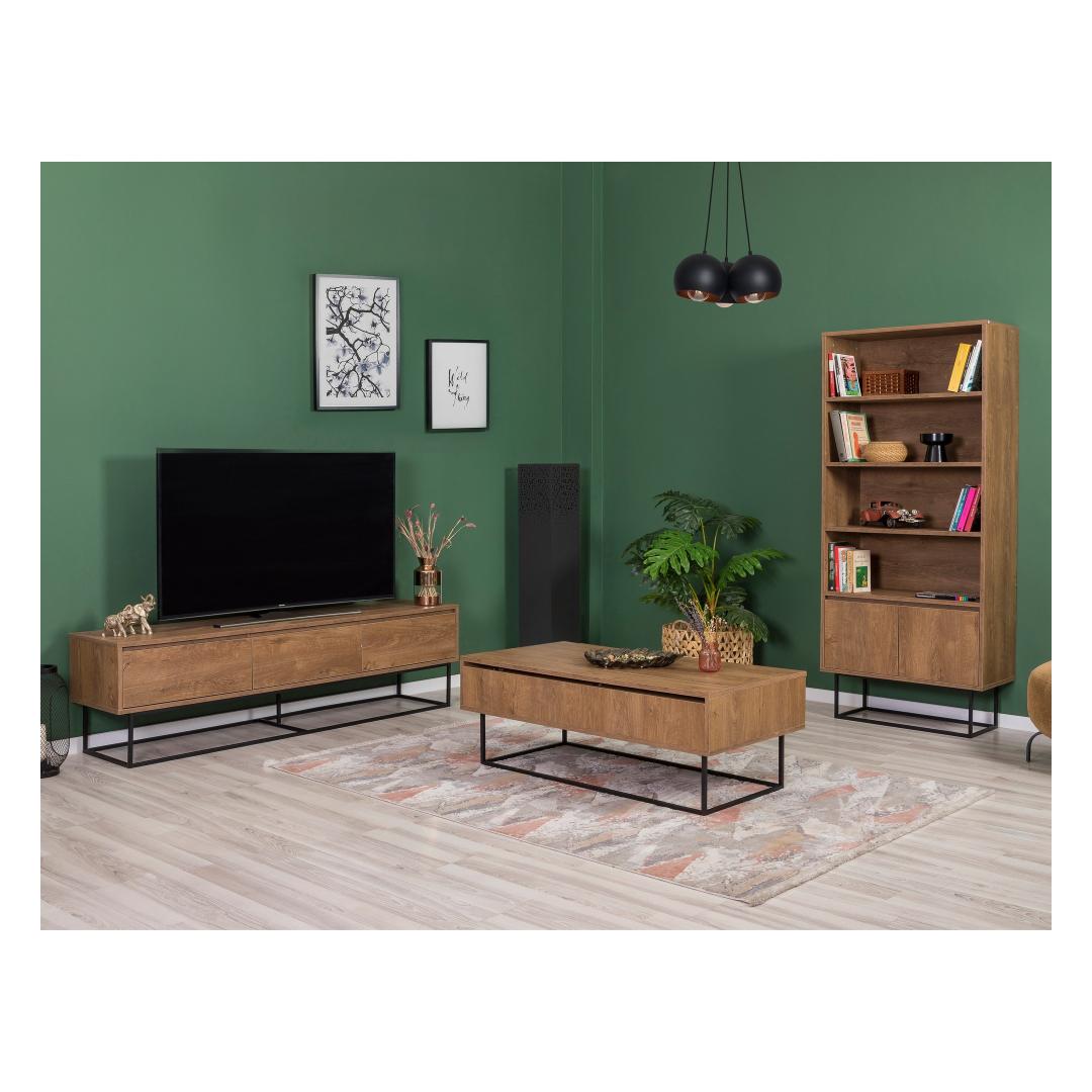 Muuda oma elutuba stiilseks ja hubaseks pelgupaigaks meie suurepärase elutoa mööbliseeriaga. Valmistatud 100% melamiinkattega puitlaastplaadist, on see seeria mitte ainult vastupidav, vaid kiirgab ka luksuslikku võlu, mis tõstab teie ruumi atmosfääri.Elegantne disain kaasaegsetele kodudeleSelle mööbliseeria sujuv disain ühendab pähkli sooja tooni musta elegantsiga, luues ajatu välimuse, mis sobib igasuguste sisustustüüpidega. PVC jalad lisavad modernsuse puudutust, samas kui 18 mm paksus tagab tugevuse ja pikaealisuse.Loo tervitav atmosfäärOlgu te tegemas külalistele seltskonda või lõõgastumas oma lähedastega, see elutoa mööbliseeria pakub piisavalt ruumi kõigi teie vajaduste jaoks. Generoossed mõõtmed 90 cm laius, 39 cm sügavus ja 40 cm kõrgus pakuvad palju ruumi ladustamiseks ja väljapanekuks, muutes selle ideaalseks nii praktilisuse kui ka esteetika jaoks.Uuenda oma eluruumi tänaÄra lepi tavalise mööbliga, kui saad erakordset. Tõsta oma elutuba meie kvaliteetse mööbliseeriaga ja koge, millist erinevust see sinu kodus teeb. Hellita end luksuse ja mugavusega selle hämmastava lisandiga oma eluruumi.Tehnilised andmed:Materjal: 100% melamiinkattega puitlaastplaatPaksus: 18 mmJalad: PVC jaladJala kõrgus: 15 cmMõõtmed: 90 cm (L) x 39 cm (S) x 40 cm (K)Värv: Pähkel ja must Värv: Walnut Black