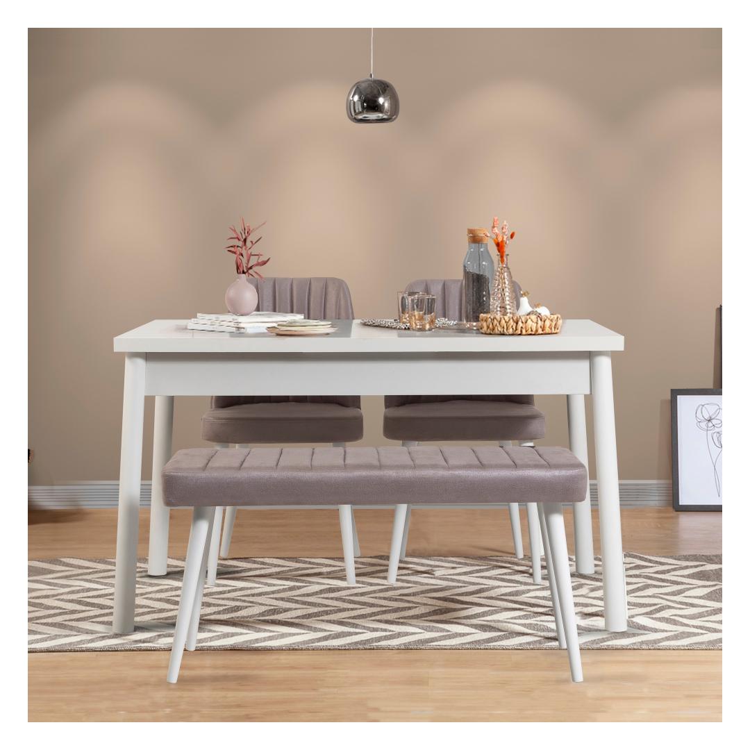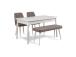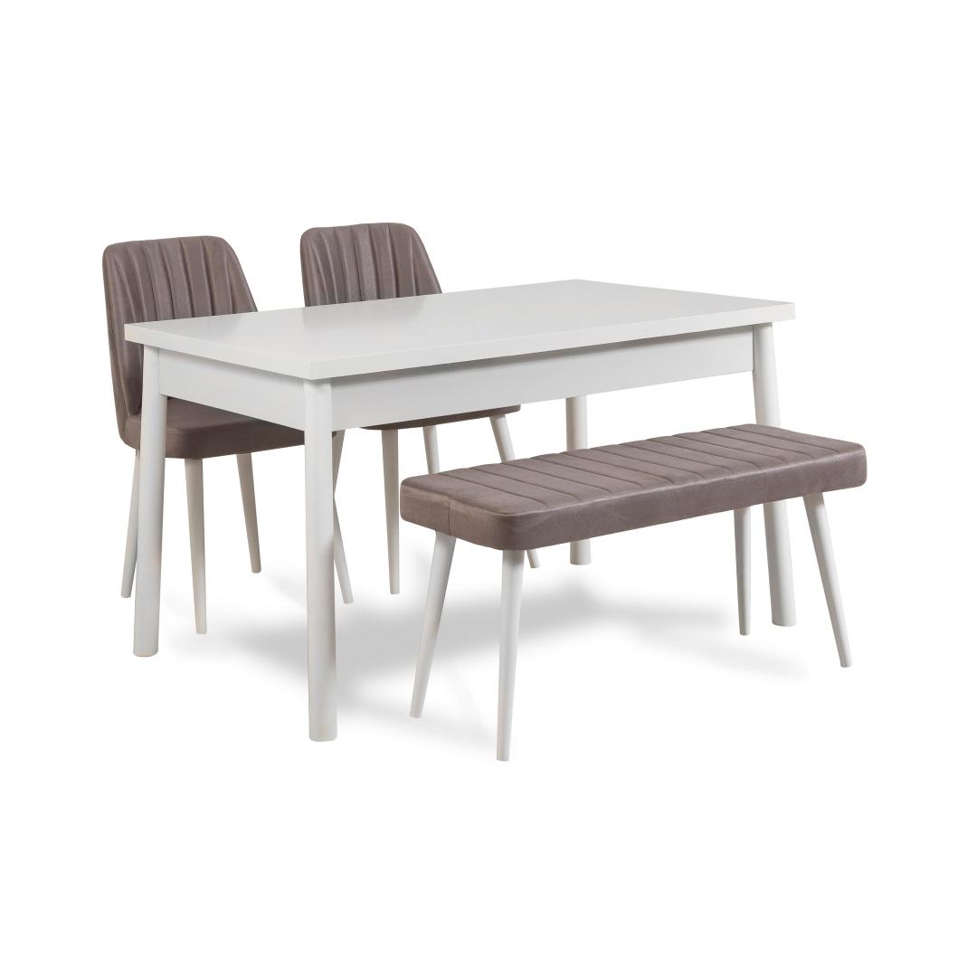 Loo hubane ja stiilne söögituba meie skandinaavia laua ja toolide komplektigaMuutke oma söögituba soojaks ja kutsuvaks ruumiks meie skandinaavia laua ja toolide komplektiga. See komplekt on valmistatud armastuse ja tähelepanelikkusega, et tuua teie koju mugavust ja stiili. Koge melamiiniga kaetud puitlaastplaadi iluMeie laua ja toolide komplekt on valmistatud 100% melamiiniga kaetud puitlaastplaadist, mis tagab vastupidavuse ning vastupidavuse kriimustuste ja plekkide suhtes. 18 mm paksus lisab tugevust ja stabiilsust, mistõttu sobib see ideaalselt igapäevaseks kasutamiseks. Tõstke oma söögikogemust puust jalgadegaLaual on elegantsed puidust jalad, mis lisavad teie söögikohale elegantsust. Looduslik puidu viimistlus täiendab üldist skandinaavia disaini, luues harmoonilise ja kutsuva atmosfääri. Lõbutsege luksuslikus mugavuses sametist vahtpolsterdatud toolidegaToolid ja pink on polsterdatud 100% sametvahtkangaga, mis tagab pehme ja pehme istumiskogemuse. Metallraamid tagavad vastupidavuse ja stabiilsuse, samal ajal kui elegantse disainiga toolid lisavad teie söögikohale moodsa nüansi. Tehnilised üksikasjad:Söögilaud: Laius: 120 cm, kõrgus: 77 cm, sügavus: 75 cm.Tooliraam: MetallToolikangas: 100% sametist vahtTooli (2 tk): Laius: 47 cm, kõrgus: 89 cm, istme kõrgus: 49 cm.Pingi raam: MetallPinki kangas: 100% sametist vahtPink (1 tk): Laius: 100 cm, kõrgus: 48 cm, sügavus: 39 cm.Värv: valge ja hallUuendage oma söögiruumi meie skandinaavia laua ja toolide komplektiga juba täna ning looge hubane ja stiilne atmosfäär unustamatuteks hetkedeks oma lähedastega. Värv: White Grey