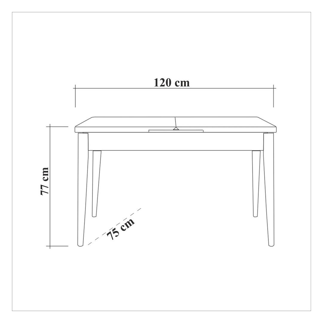 Dining Table: Width: 120 cm Height: 77 cm Depth: 75 cm