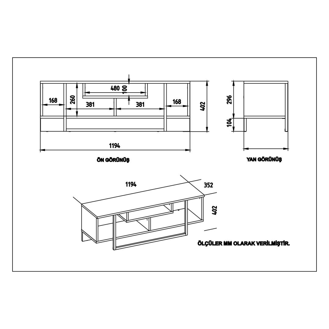 TV Stand Size: Width: 119,4 cm Height: 40,2 cm Depth: 35,2 cm