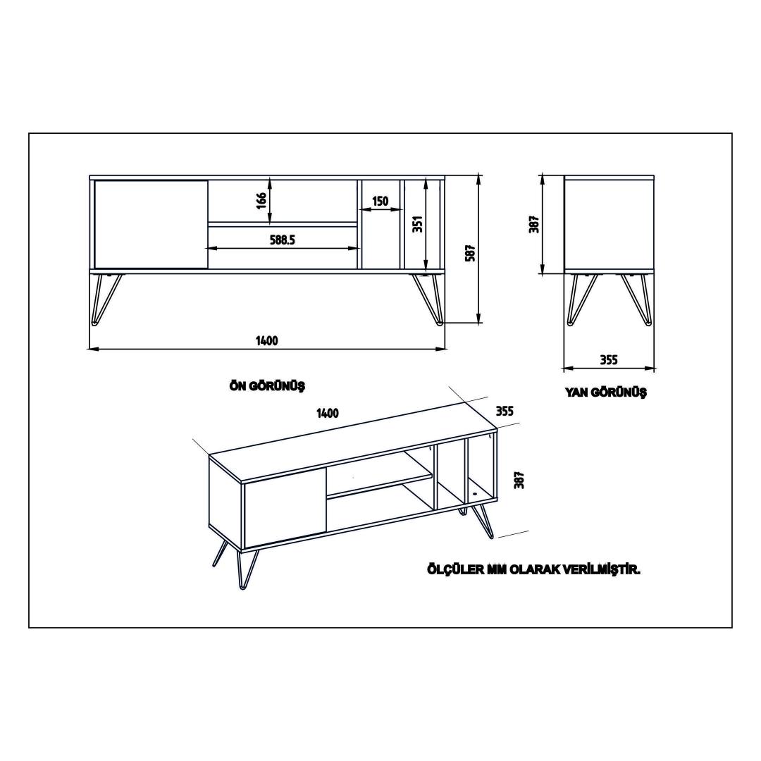 TV Stand Size: Width: 140 cm Height: 58,7 cm Depth: 35,5 cm