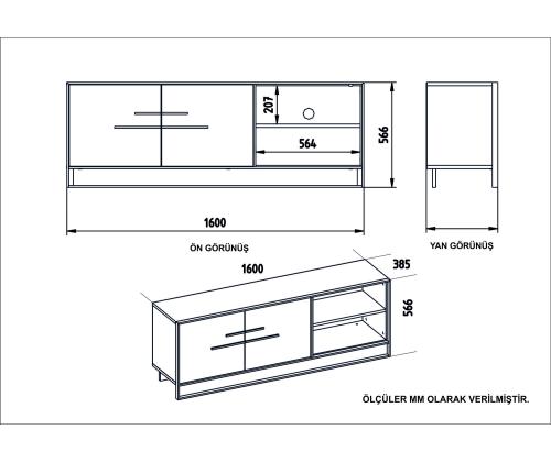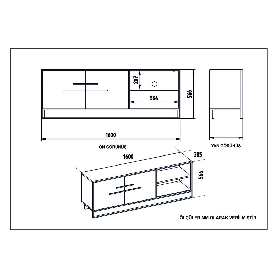 TV Stand Size: Width: 160 cm Height: 56,6 cm Depth: 38,5 cm