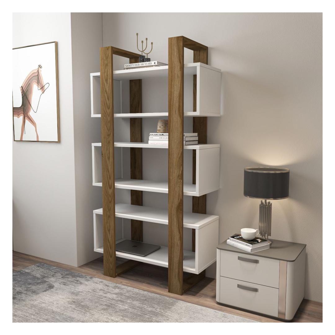 Raamaturiiul Reina - Walnut, White